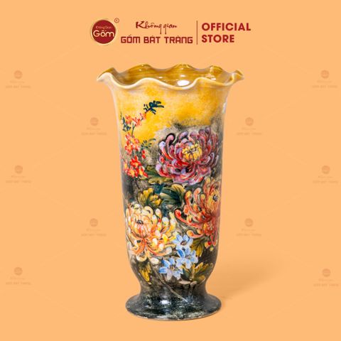 Địa chỉ mua lọ hoa miệng lượn dáng cúp vẽ hoa gốm Bát Tràng