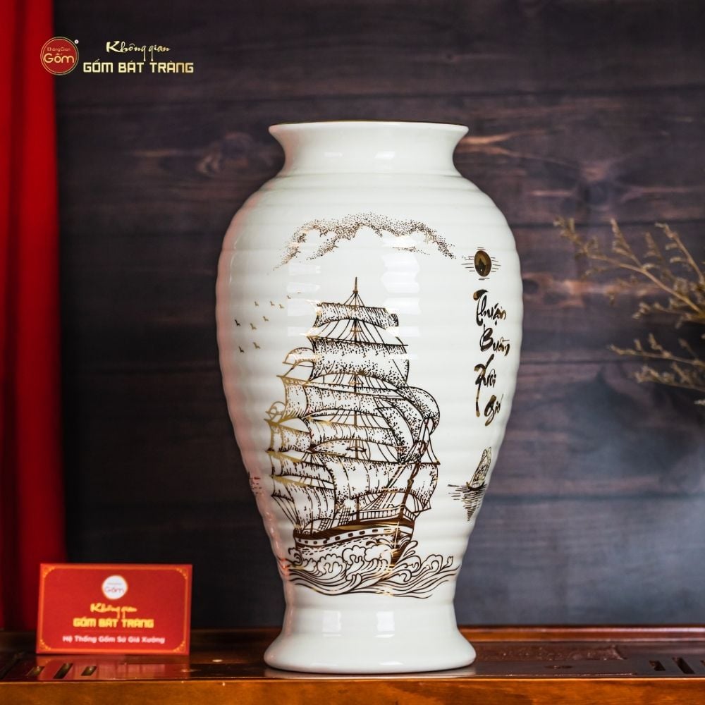 - Tên sản phẩm: Lọ Hoa Thuận Buồm Xuôi Gió Vẽ Vàng