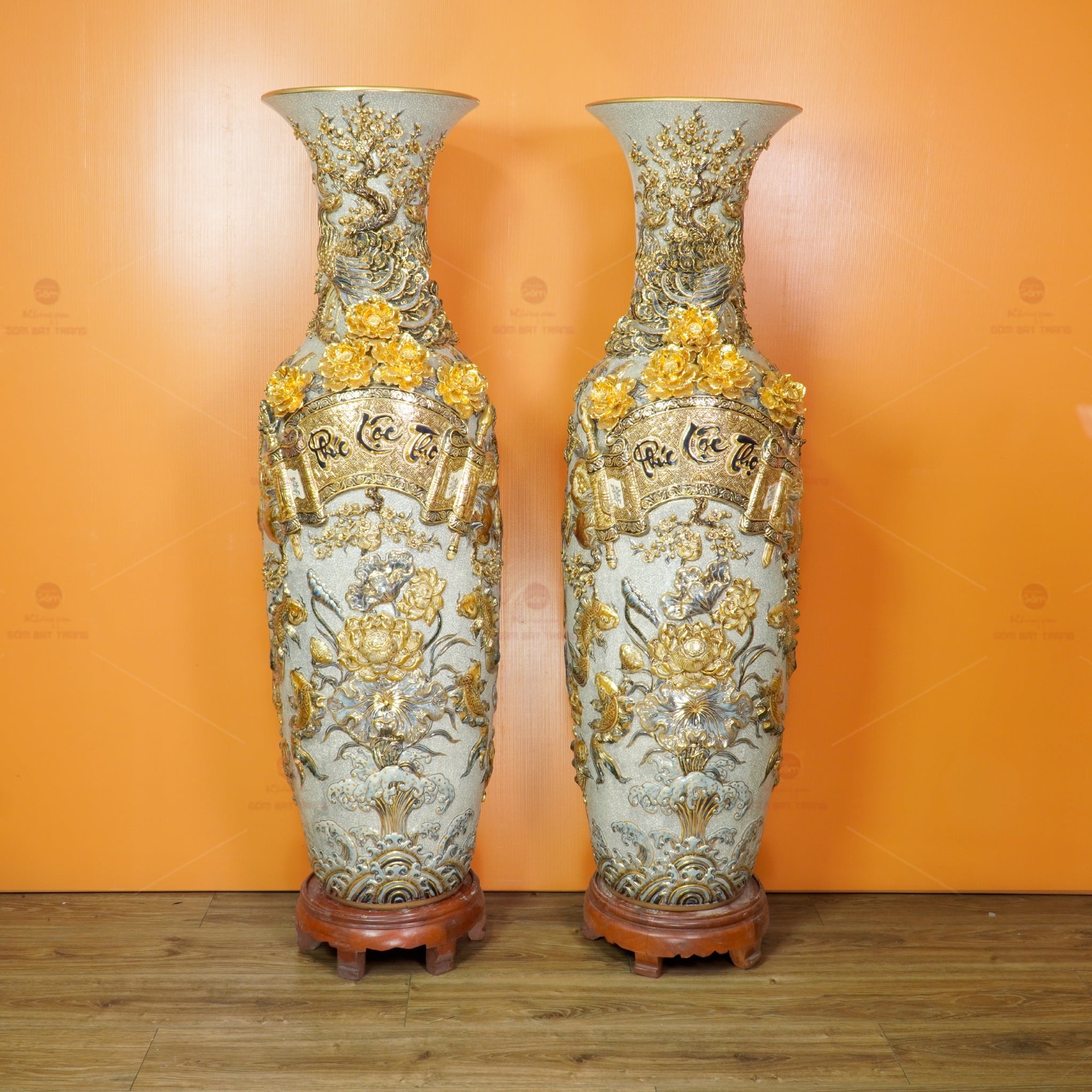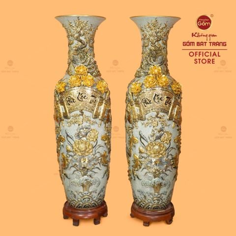 Lộc Bình 1M4 Men Rạn Phúc Lộc Thọ Đắp Nổi Vẽ Vàng