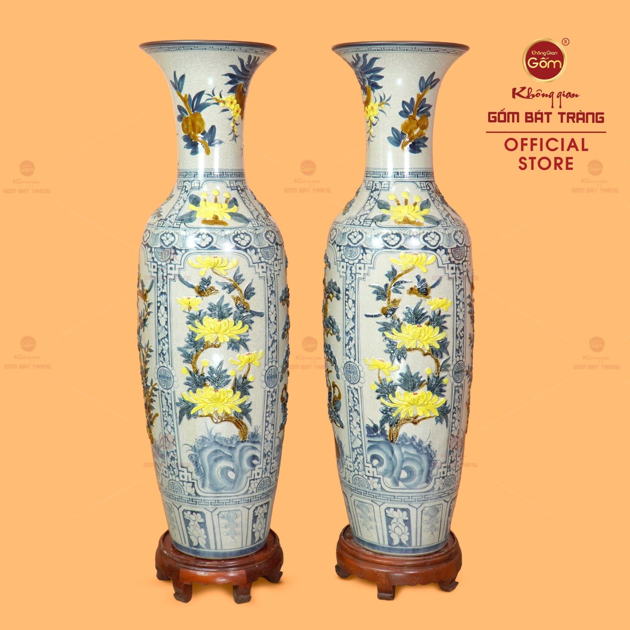 Với những ai trân trọng các giá trị văn hóa và mong muốn sở hữu một vật phẩm phong thủy chuẩn mực, mang tính nghệ thuật cao, Lộc Bình 1M4 Men Rạn Tứ Quý Hoa Vàng Đắp Nổi chính là lựa chọn xứng tầm. Tại Không Gian Gốm Bát Tràng, chúng tôi cam kết cung cấp sản phẩm chính gốc Bát Tràng, được chế tác bởi nghệ nhân làng gốm với đầy đủ tâm huyết và tay nghề thủ công tinh xảo.