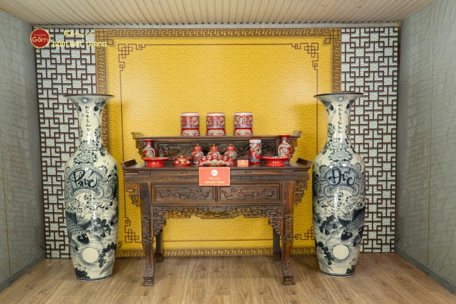 Sản phẩm hiện có mặt tại hệ thống cửa hàng của Không Gian Gốm trên toàn quốc với sự đa dạng về họa tiết đi kèm. Chúng tôi cung cấp dịch vụ trọn gói bao gồm tư vấn phong thủy, tặng kèm đôn gỗ hoặc đôn sứ chất lượng cao, và vận chuyển lắp đặt an toàn tuyệt đối. Đặc biệt, chúng tôi nhận đặt làm theo yêu cầu riêng, khắc tên hoặc niên hiệu để tạo nên dấu ấn độc bản.