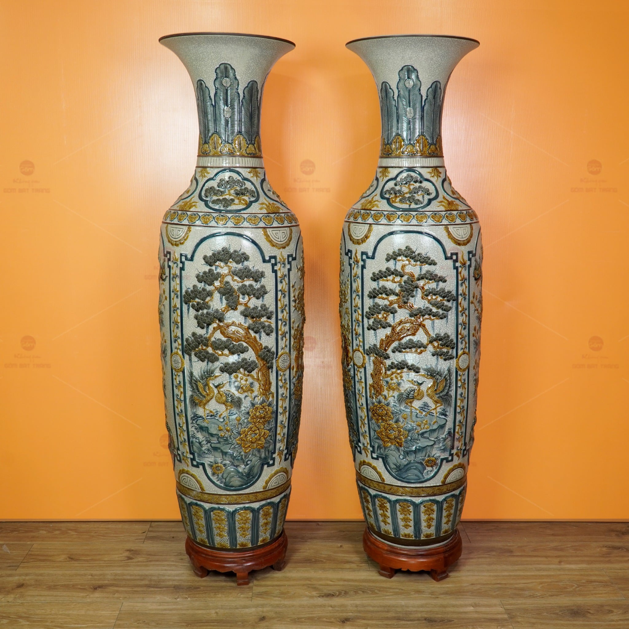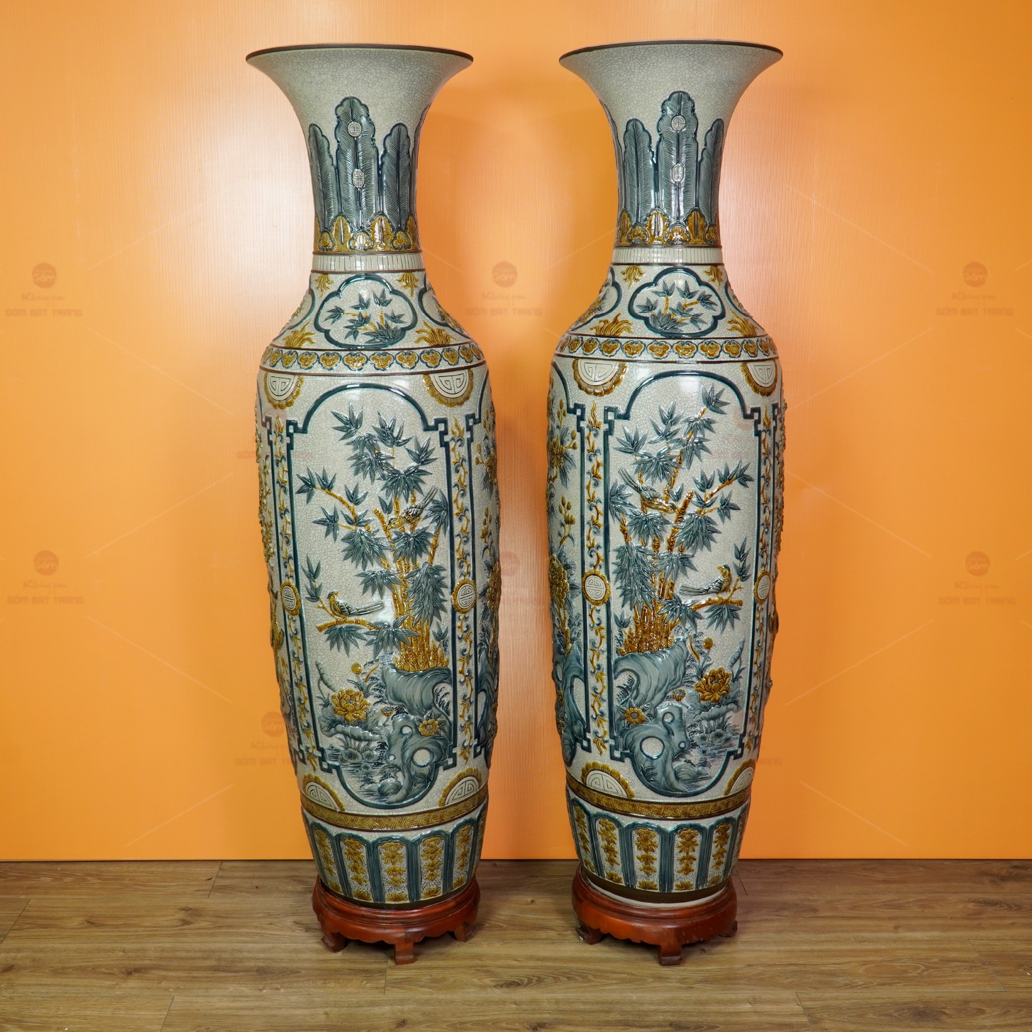 Mua Lộc Bình 1M6 Men Rạn Tứ Quý Đắp Nổi tại Không Gian Gốm