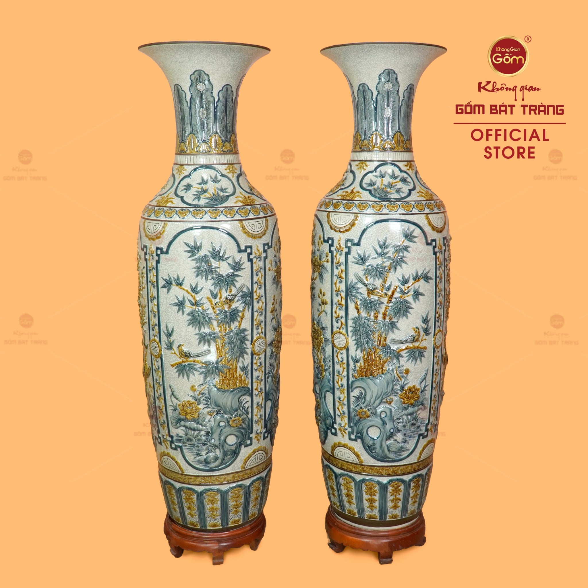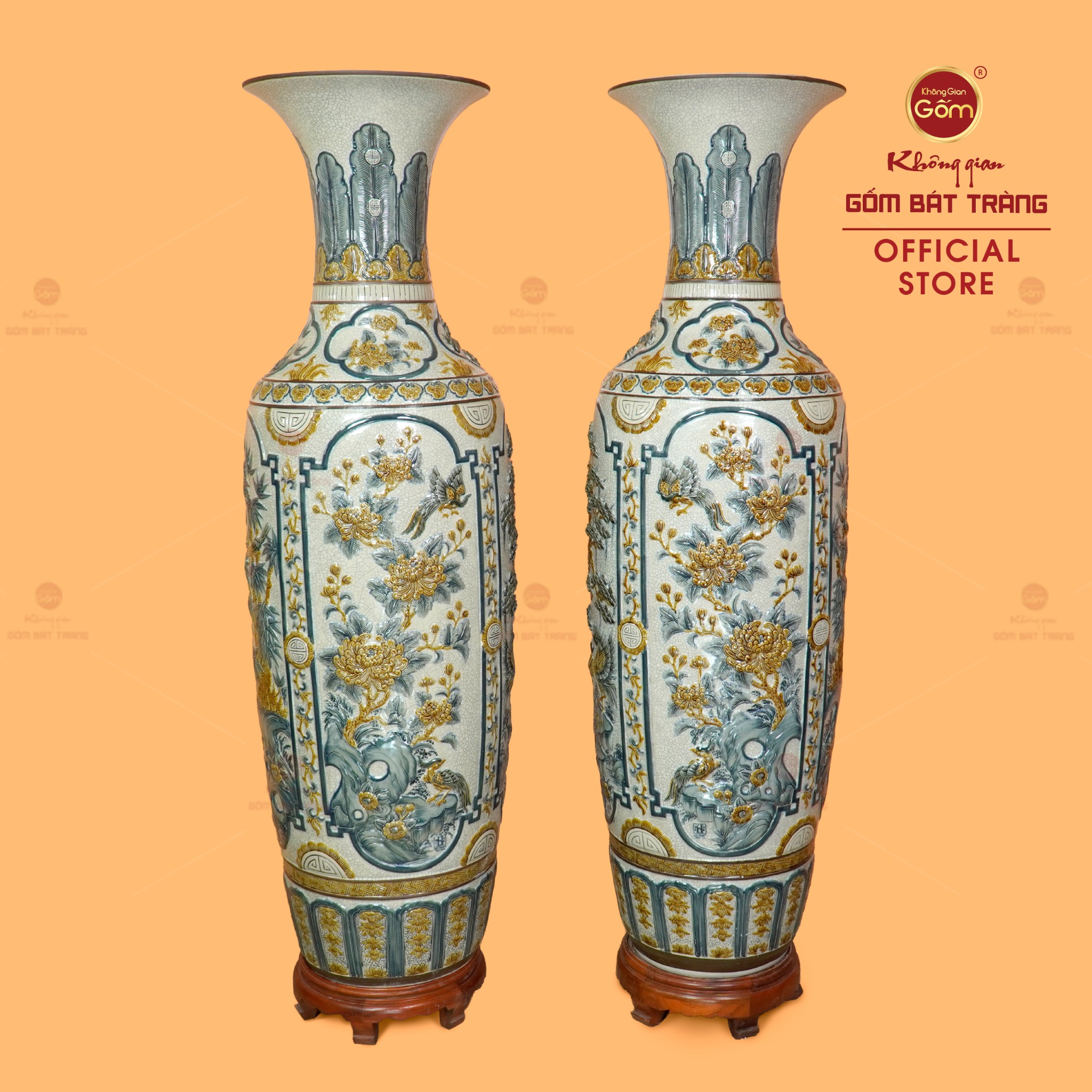 Với những ai trân trọng các giá trị văn hóa và mong muốn sở hữu một vật phẩm phong thủy chuẩn mực, mang tính nghệ thuật cao, Lộc Bình 1M4 Men Rạn Tứ Quý Hoa Vàng Đắp Nổi chính là lựa chọn xứng tầm. Tại Không Gian Gốm Bát Tràng, chúng tôi cam kết cung cấp sản phẩm chính gốc Bát Tràng, được chế tác bởi nghệ nhân làng gốm với đầy đủ tâm huyết và tay nghề thủ công tinh xảo.
