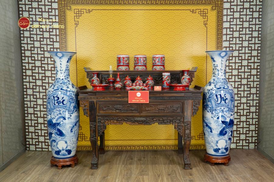 Sản phẩm có kích thước đa dạng (thường là 1m4, 1m6...), phù hợp với nhiều không gian nội thất từ truyền thống đến tân cổ điển. Với chất men lam sáng bóng ít bám bụi và ý nghĩa tốt lành, bộ lộc bình này rất thích hợp để làm quà biếu tân gia, khai trương cửa hàng, hoặc cung tiến vào nhà thờ họ, đình chùa để cầu mong sự an lạc và thịnh vượng.