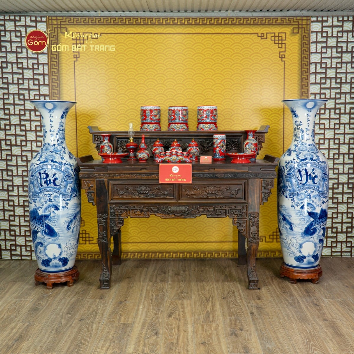 Sản phẩm hiện có mặt tại hệ thống cửa hàng của Không Gian Gốm trên toàn quốc với đa dạng kích thước, đi kèm đôn và dịch vụ tư vấn bài trí chuẩn phong thủy. Đặc biệt, chúng tôi nhận đặt làm theo yêu cầu riêng, vẽ thêm lời chúc, ngày tháng để làm quà tặng kỷ niệm, mừng tân gia, khai trương hoặc gửi tặng trọn gói đến tận tay người nhận.