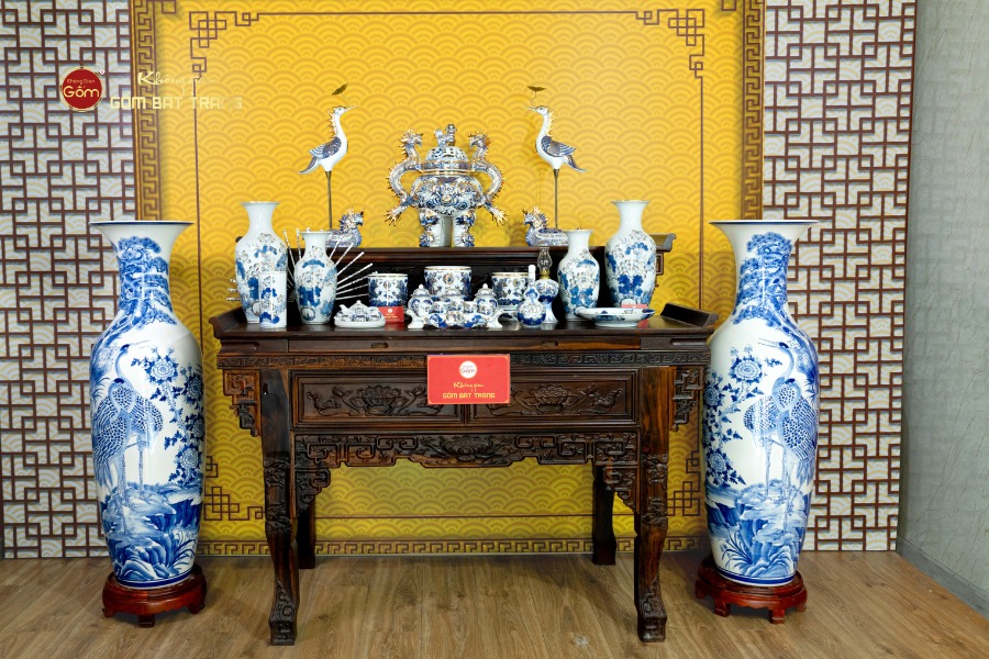 Tại Không Gian Gốm Bát Tràng, khách hàng có thể lựa chọn nhiều mẫu Lộc Bình Men Lam Tùng Hạc với kích thước đa dạng, phù hợp từ không gian phòng khách, phòng thờ, cho đến đại sảnh rộng lớn. Mỗi sản phẩm đều được chế tác thủ công tinh xảo, đảm bảo nước men lam bền đẹp, sáng trong, cùng đường nét họa tiết tùng hạc sắc sảo, sống động.