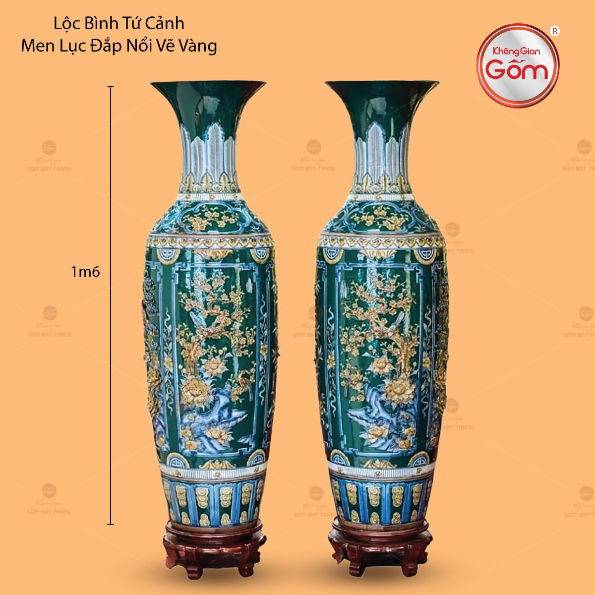 Tại Tp.HCM, Không Gian Gốm Bát Tràng là địa chỉ uy tín chuyên cung cấp các sản phẩm lộc bình tứ cảnh men lục đắp nổi vẽ vàng chính hãng Bát Tràng. Sản phẩm tại đây được chế tác thủ công bởi nghệ nhân làng nghề, đảm bảo chất lượng cao, họa tiết sắc nét, men bền màu và giá trị thẩm mỹ vượt trội.