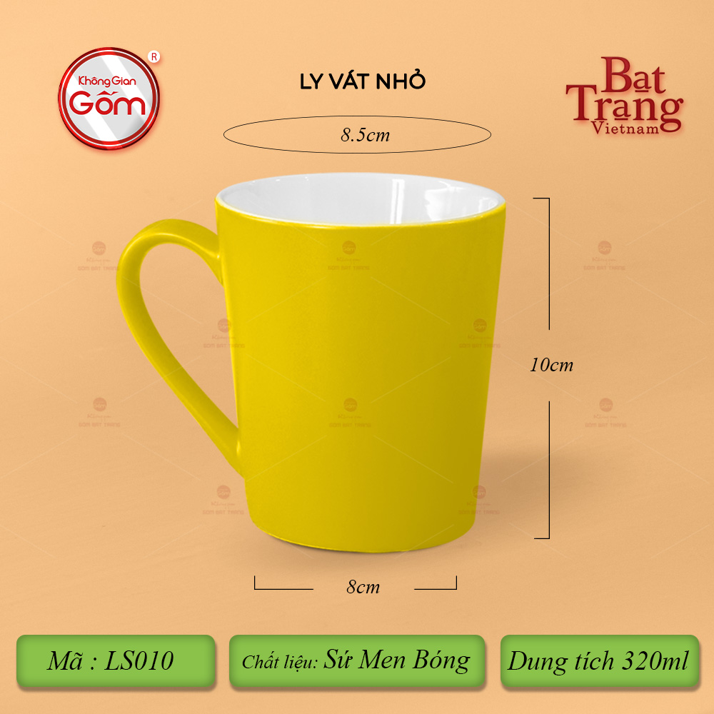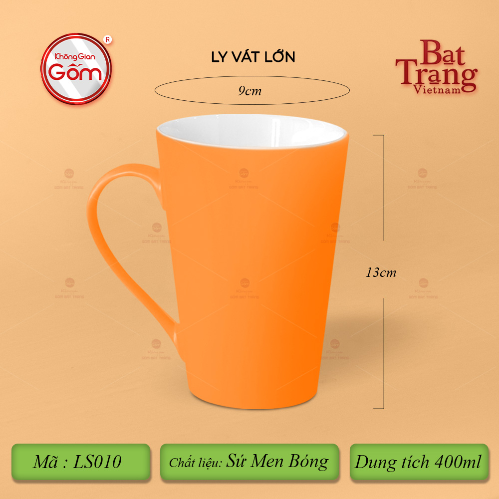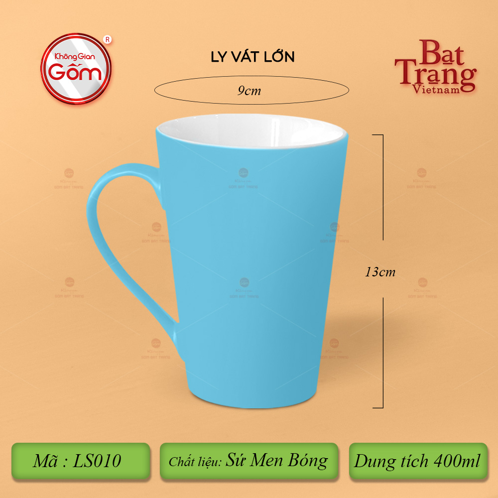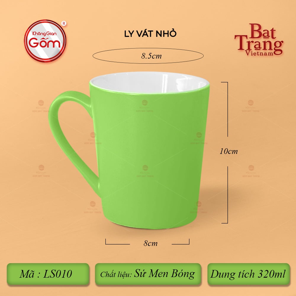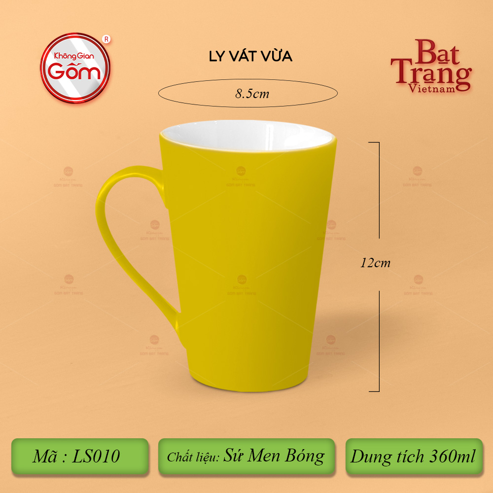 Ly Vát là sản phẩm chất lượng với chất sứ cứng cáp. Ly vát có dáng quai hình chữ C với 8 màu tươi sáng cùng 3 dung tích lớn 320-360-400ml. Ly sứ là sản phẩm thiết yếu gắn liền với mọi hoạt động hàng ngày. Ngoài giá trị sử dụng, quý vị có thể dùng ly để làm quà tặng cho những người thân yêu. Ly vát có tráng men lên bề mặt nên sản phẩm luôn có độ trơn bóng, sáng mịn.