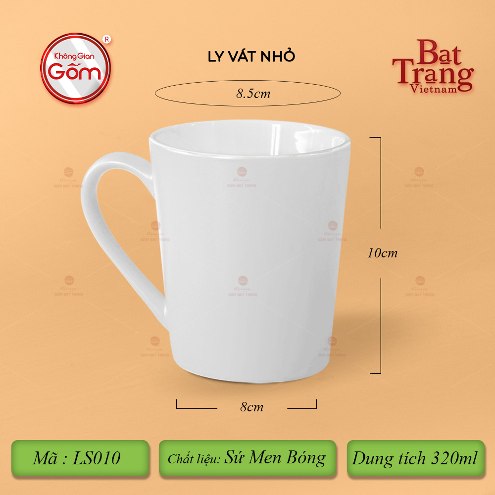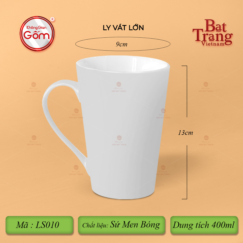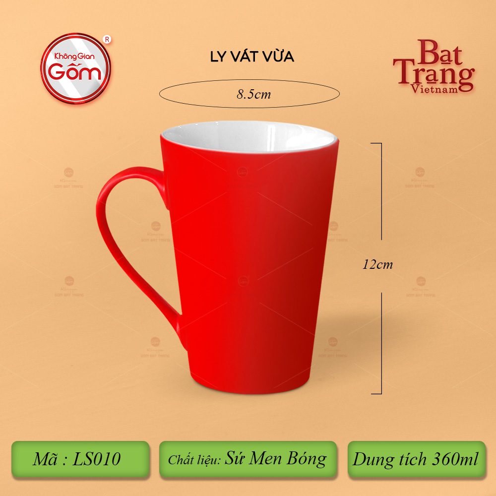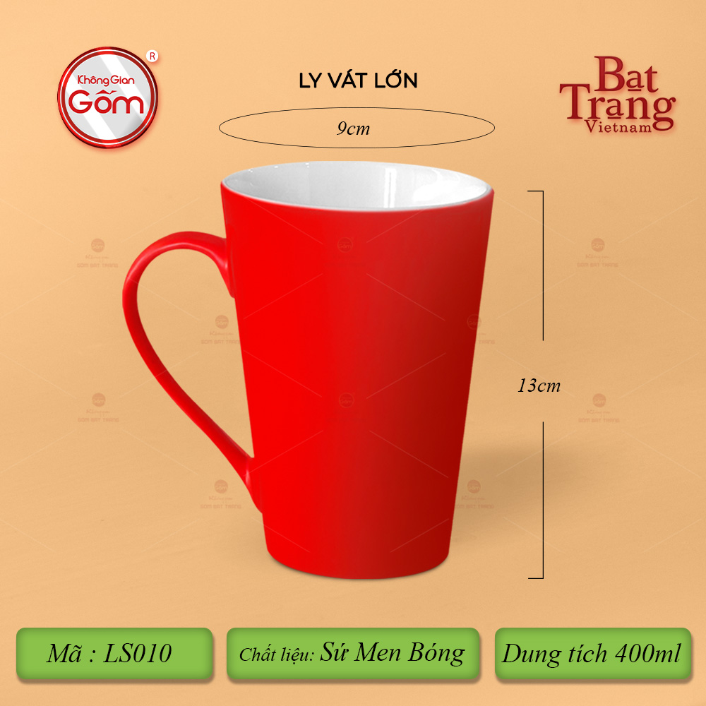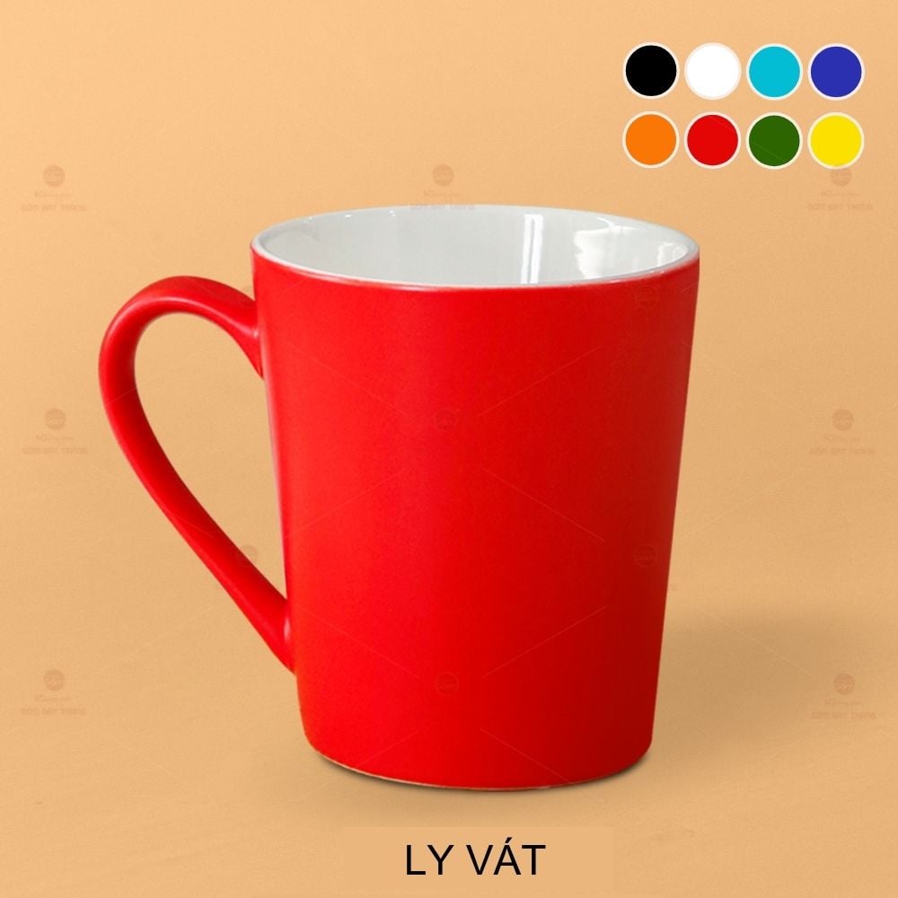 Ly Vát là sản phẩm chất lượng với chất sứ cứng cáp. Ly vát có dáng quai hình chữ C với 8 màu tươi sáng cùng 3 dung tích lớn 320-360-400ml. Ly sứ là sản phẩm thiết yếu gắn liền với mọi hoạt động hàng ngày. Ngoài giá trị sử dụng, quý vị có thể dùng ly để làm quà tặng cho những người thân yêu. Ly vát có tráng men lên bề mặt nên sản phẩm luôn có độ trơn bóng, sáng mịn.