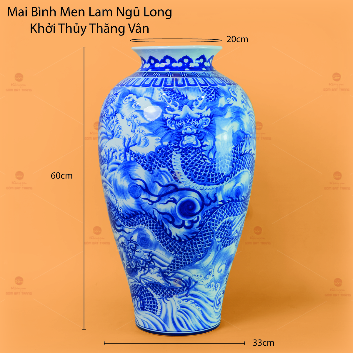 - Tên sản phẩm: Mai Bình Men Lam Ngũ Long Khởi Thủy Thăng Vân
