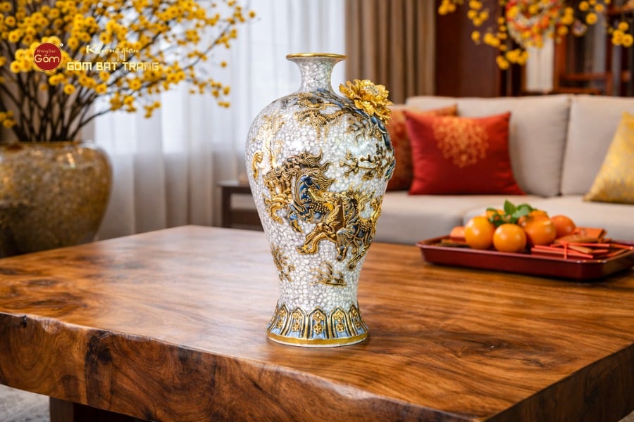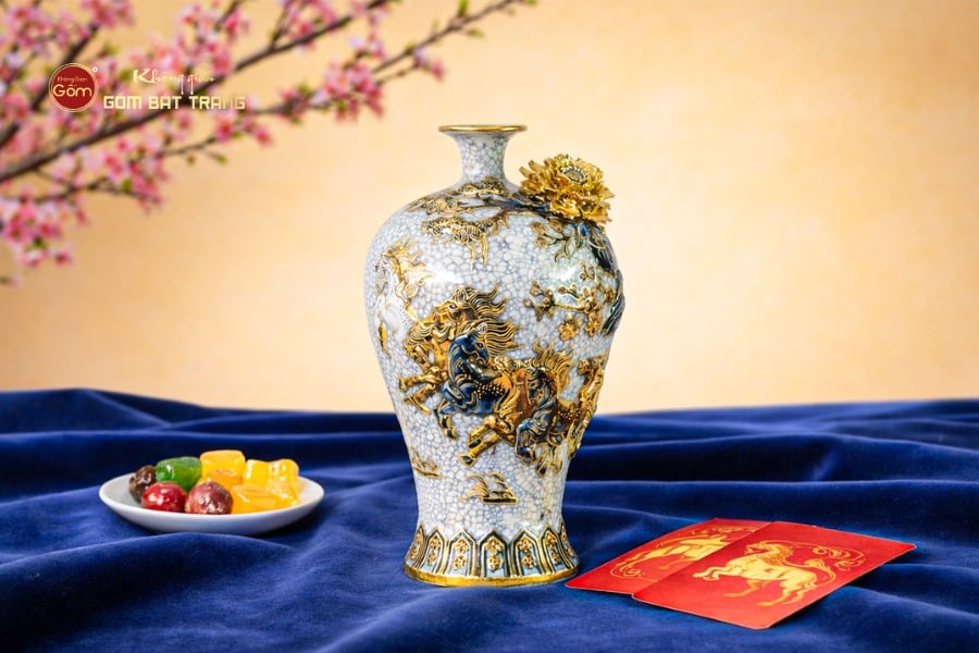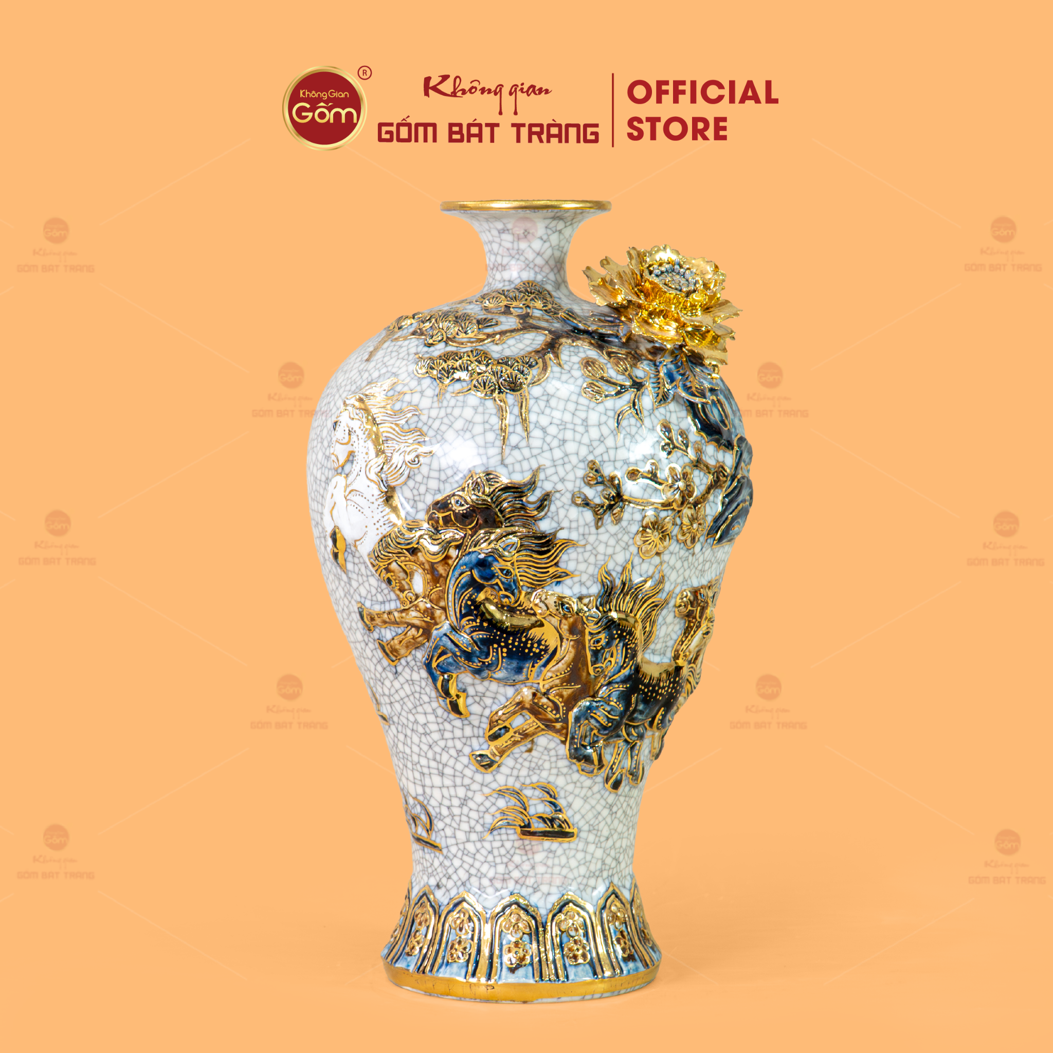 Ý nghĩa Mai Bình Men Rạn Mã Đáo Thành Công Đắp Nổi Vẽ Vàng