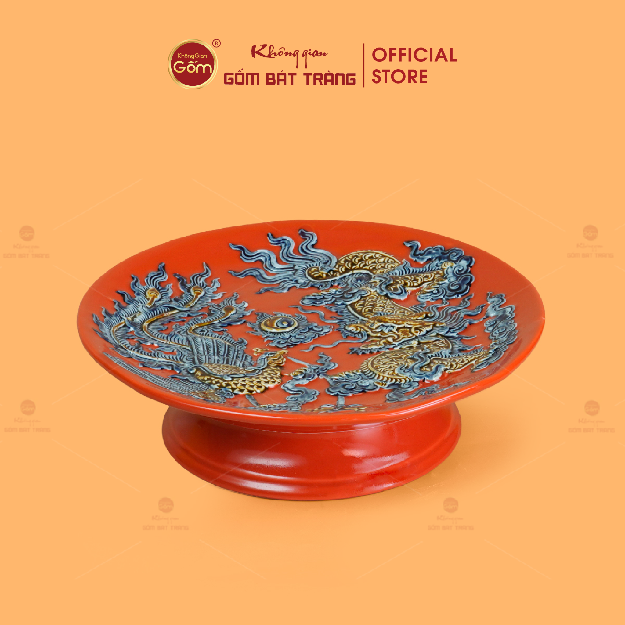 Mâm Bồng Men Đỏ Họa Tiết Long Phụng Trình Tường