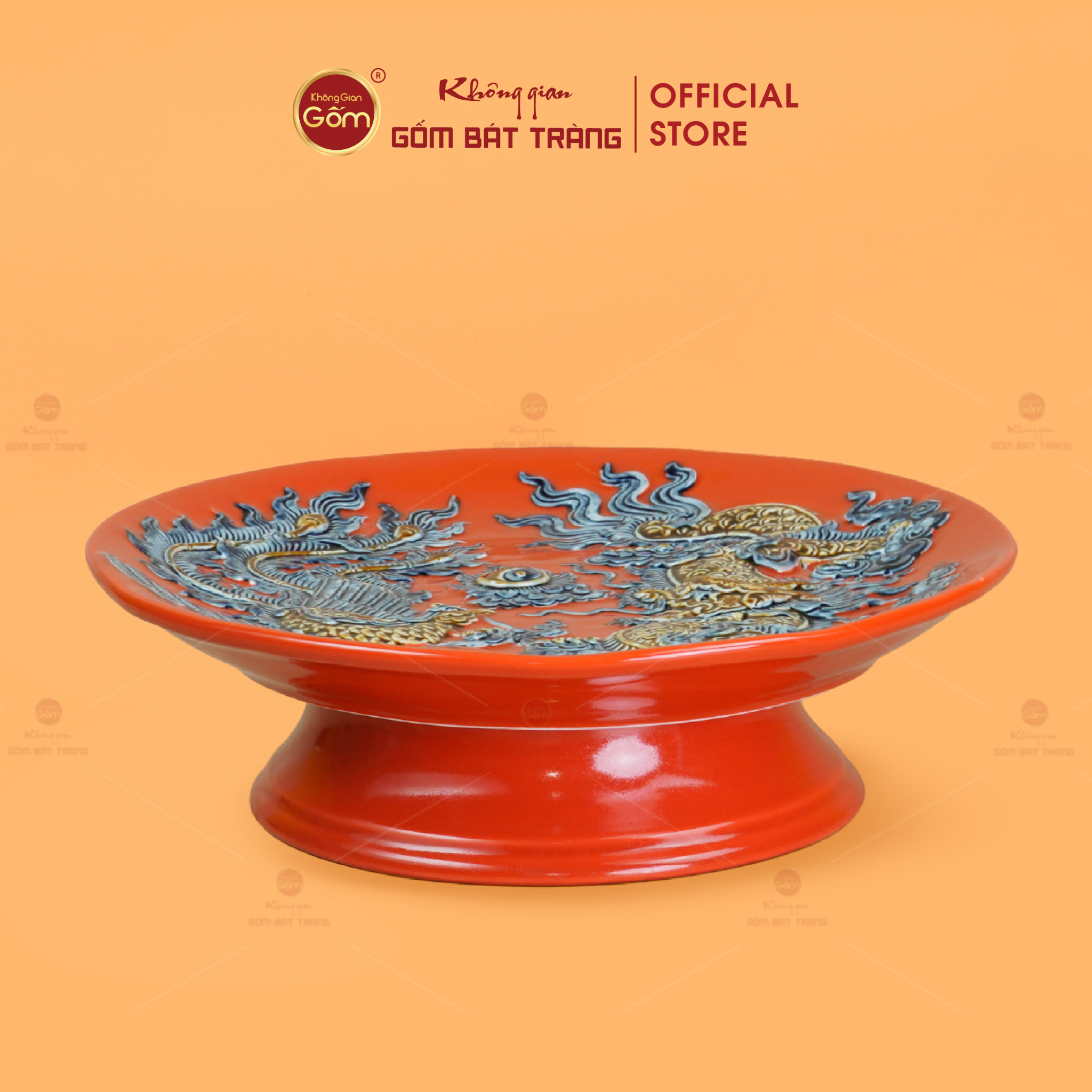 - Tên sản phẩm: Mâm Bồng Men Đỏ Họa Tiết Long Phụng Trình Tường