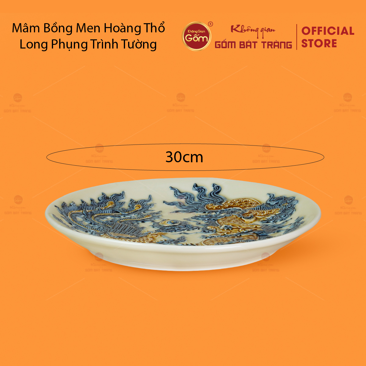 - Tên sản phẩm: Mâm Bồng Men Hoàng Thổ Họa Tiết Long Phụng Trình Tường