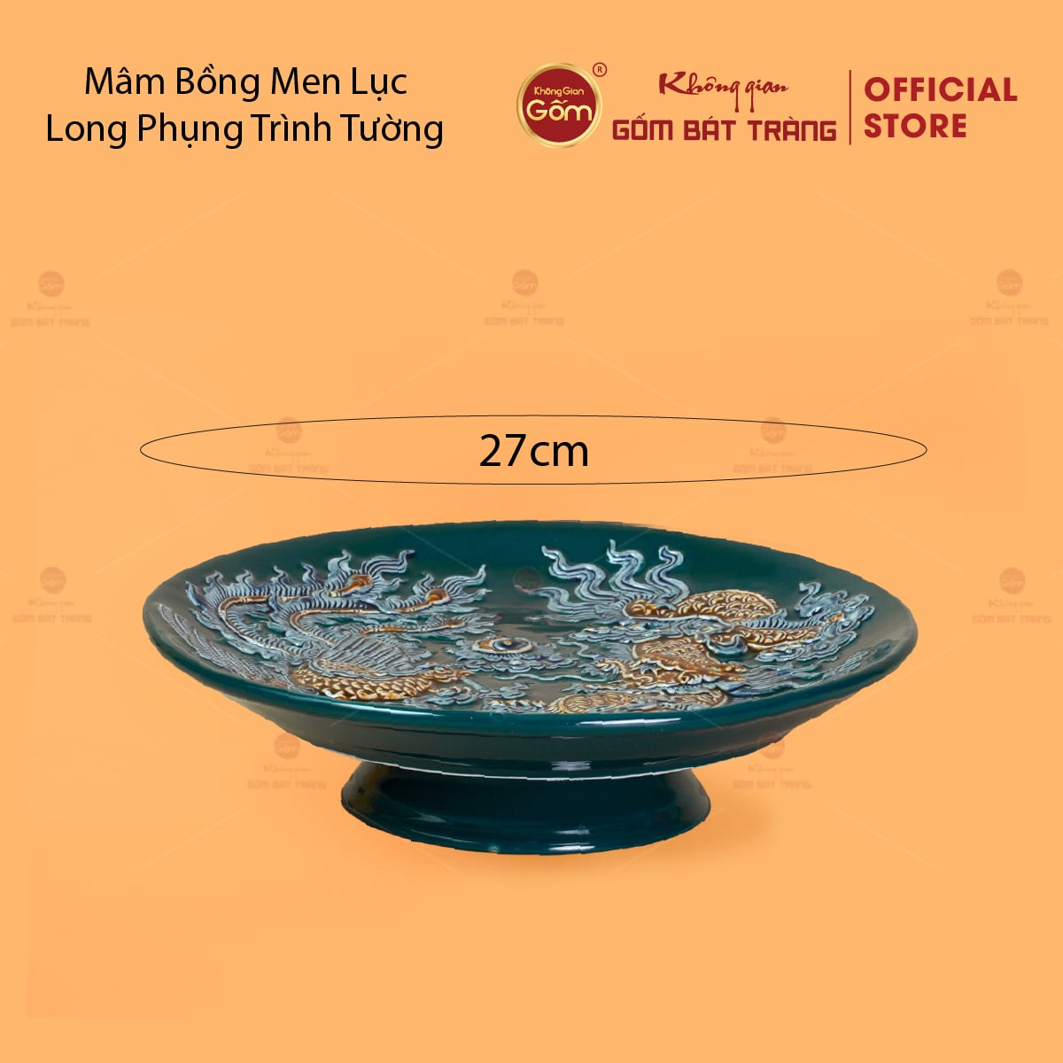 - Tên sản phẩm: Mâm Bồng Men Lục Họa Tiết Long Phụng Trình Tường
