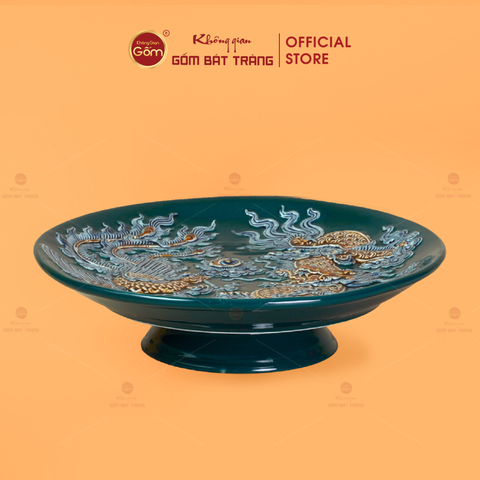 Mâm Bồng Men Lục Họa Tiết Long Phụng Trình Tường