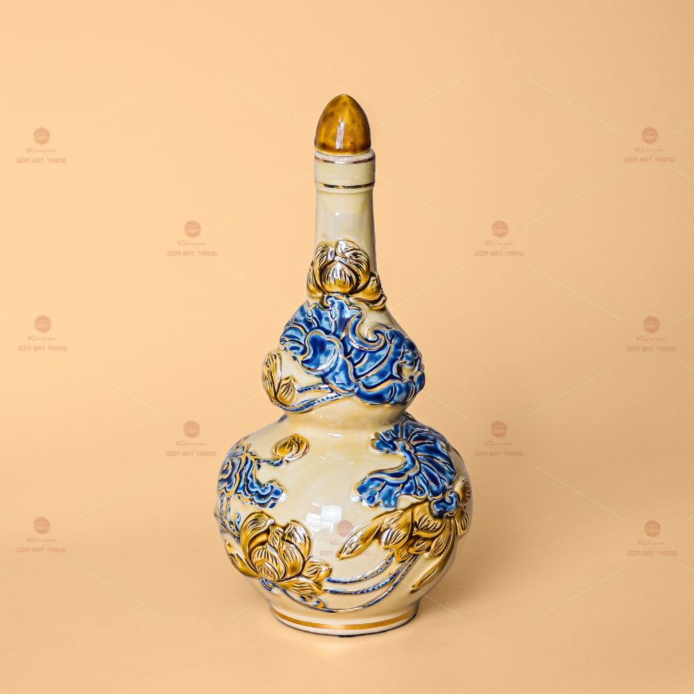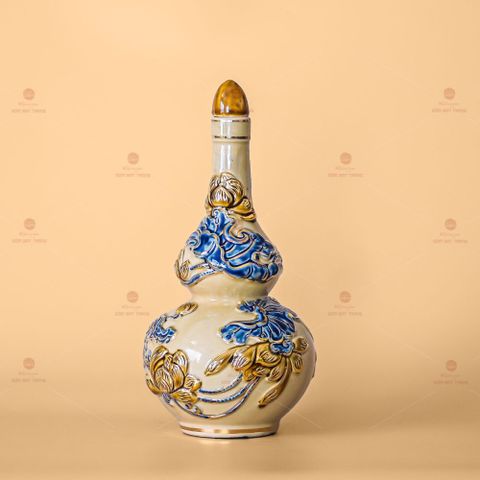 - Tên sản phẩm: Nậm Rượu Thờ Men Hoàng Tộc Vẽ Vàng Họa Tiết Hoa Sen