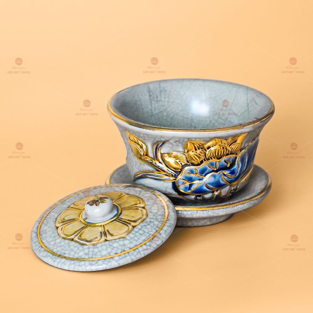 - Tên sản phẩm: Bát Sâm Thờ Men Rạn Vẽ Vàng Hoạ Tiết Hoa Sen
