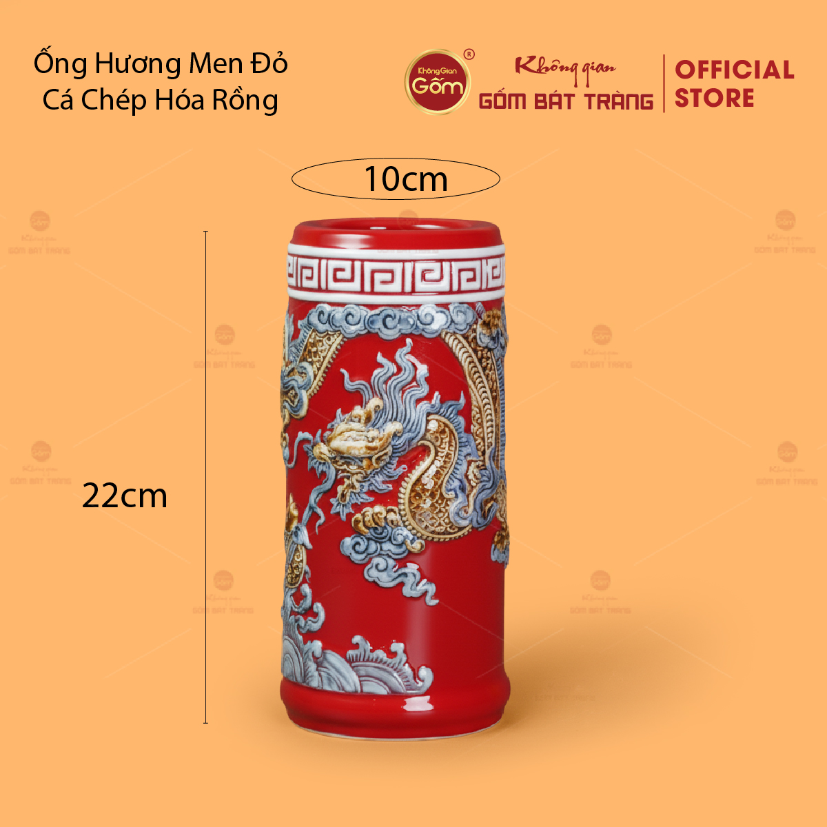 - Tên sản phẩm: Ống Hương Men Đỏ Họa Tiết Cá Chép Hóa Rồng