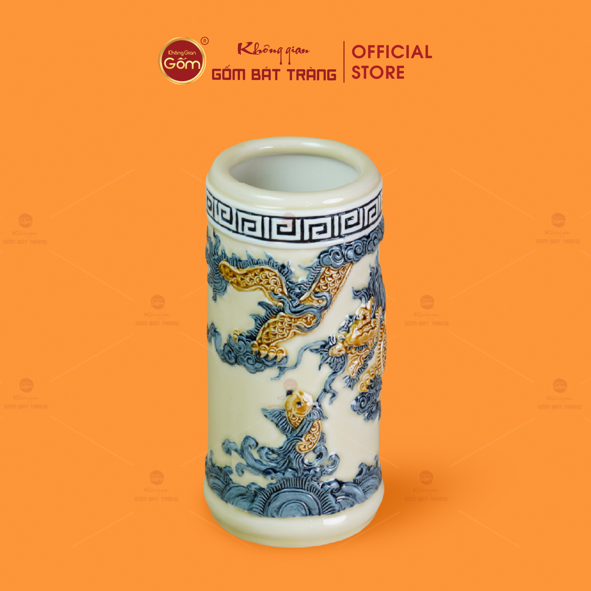 Ống Hương Men Hoàng Thổ Họa Tiết Cá Chép Hóa Rồng là vật phẩm gốm sứ thờ cúng tinh tế, đẳng cấp từ làng gốm Bát Tràng. Sản phẩm được chế tác hoàn toàn bằng tay, thể hiện sự khéo léo của các nghệ nhân với đôi bàn tay tài năng, gửi gắm đầy đủ nét truyền thống và tinh hoa của nền gốm sứ Việt Nam. Đặc biệt, sắc Men Hoàng Thổ trầm ấm, gần gũi và họa tiết Cá Chép Hóa Rồng mang lại ý nghĩa vững chãi, ổn định và công thành danh toại.