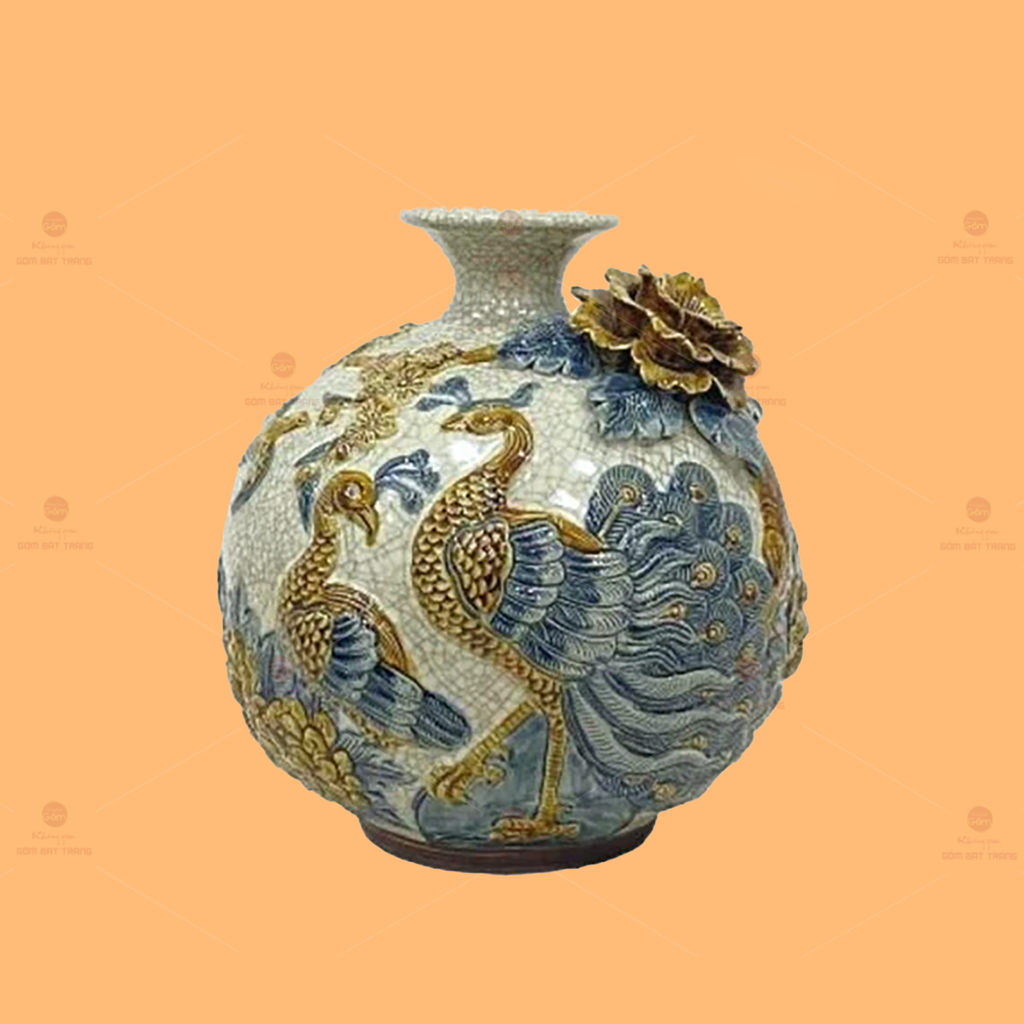 - Chất liệu: Gốm sứ men rạn họa tiết đắp nổi