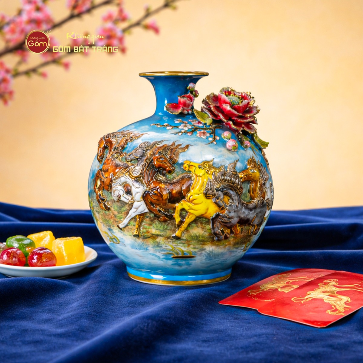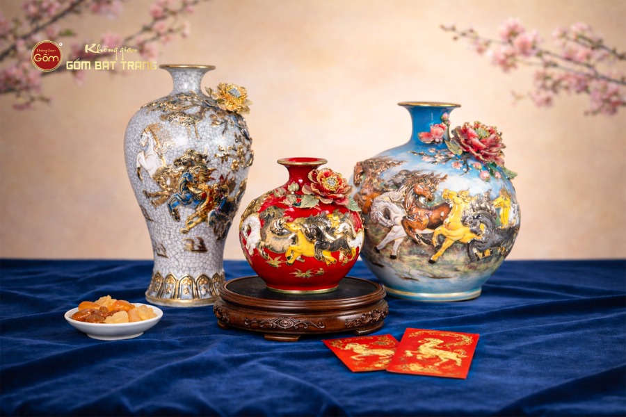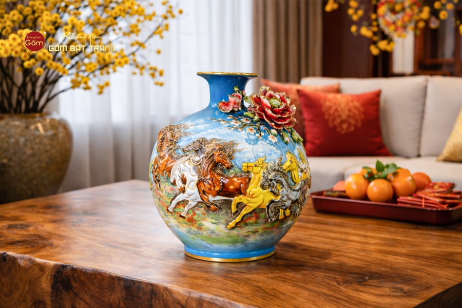 Ngoài ra, Không Gian Gốm Bát Tràng còn cung cấp dịch vụ quà tặng doanh nghiệp (in logo, hộp quà cao cấp, thiệp chúc mừng), giao hàng nhanh tại TP.HCM, đóng gói an toàn và cho phép kiểm tra hàng trước khi thanh toán. Đội ngũ tư vấn phong thủy luôn sẵn sàng hỗ trợ vị trí đặt bình để thu hút tài lộc và may mắn.