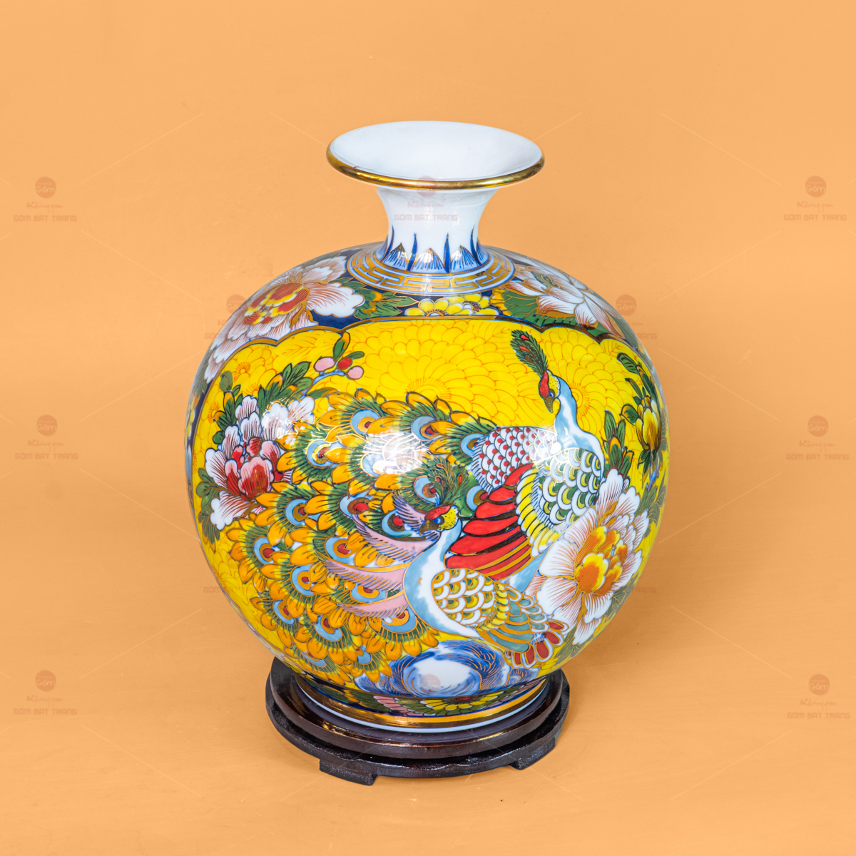 - Tên sản phẩm: Quả Hút Lộc Nhị Cảnh Men Vàng Thuận Buồm Công Mẫu Đơn Vẽ Vàng
