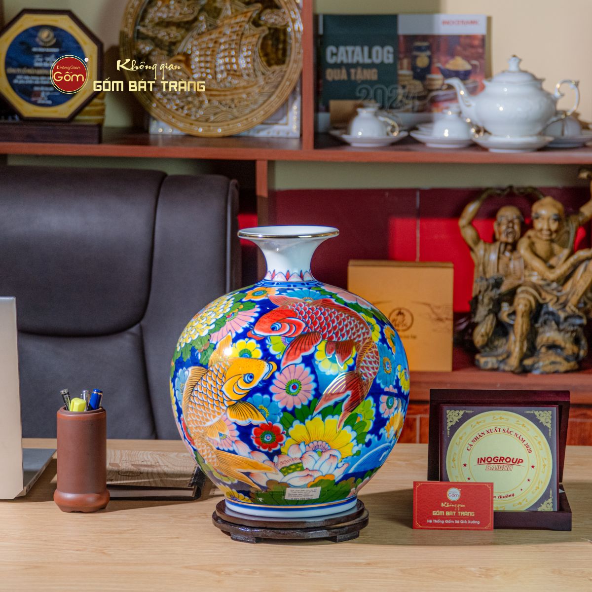 Họa tiết cá chép và các loài hoa vốn có nhiều ý nghĩa về sự may mắn và cát khí. Bình hút tài lộc hoa phú quý đem lại sự may mắn, thịnh vượng và cũng là ước nguyện về mọi điều suôn sẻ, an lành trong cuộc sống. Bình hút tài lộc cá chép hoa phú quý như thay cho lời chúc may mắn, bình an cùng với thiết kế sang trọng, màu sắc trang nhã chắc chắn sẽ làm lay động cả những người khó tính nhất.