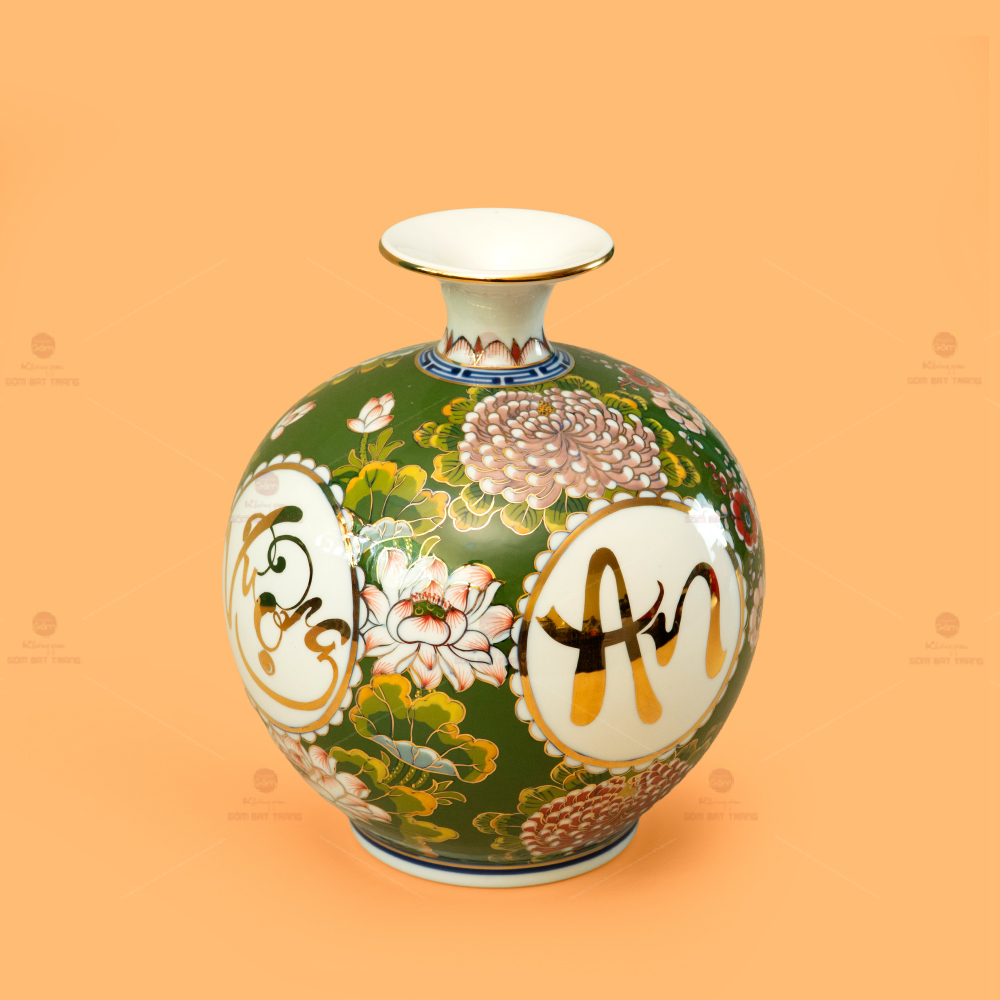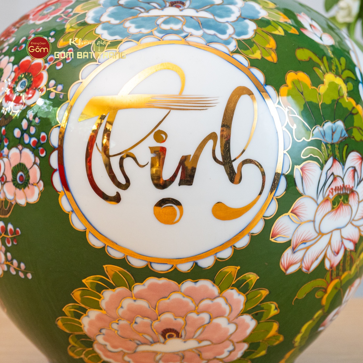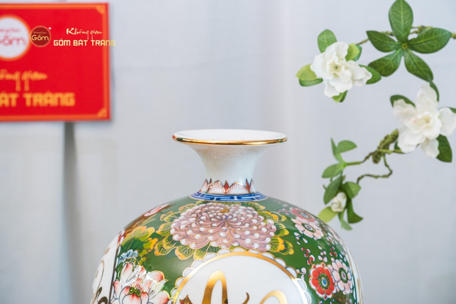 Mỗi sản phẩm đều được các nghệ nhân Bát Tràng lành nghề tạo hình, vẽ họa tiết và tráng men thủ công. Điều này đảm bảo mỗi chiếc bình là một tác phẩm nghệ thuật độc nhất, mang đậm dấu ấn tinh hoa làng gốm.
