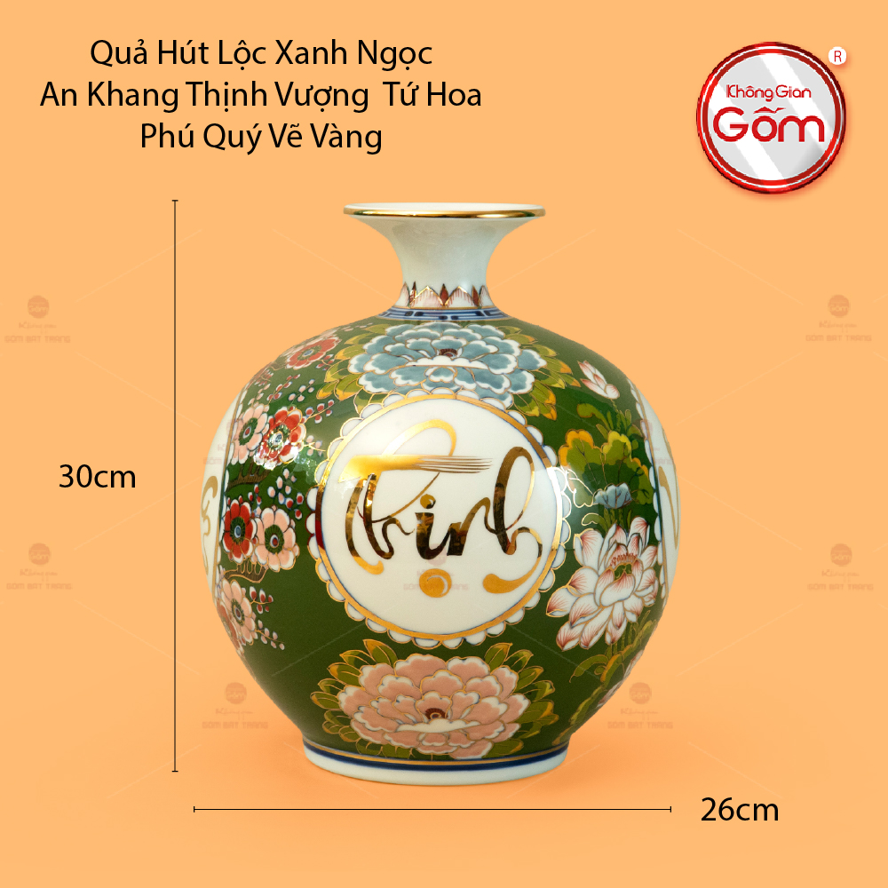 - Tên sản phẩm: Quả Hút Lộc Xanh Ngọc An Khang Thịnh Vượng Tứ Hoa Phú Quý Vẽ Vàng