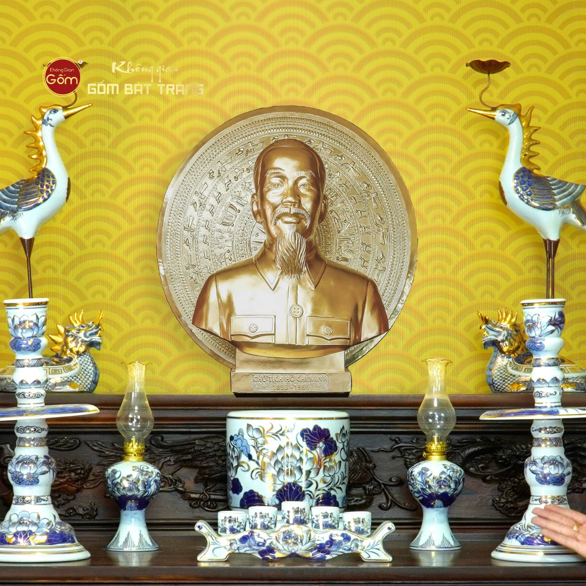 Mỗi món đều được cân đối tỉ lệ chuẩn mực, màu men và họa tiết đồng bộ, tạo nên tổng thể hài hòa, trang nghiêm và chuẩn phong thủy cho không gian thờ Chủ tịch Hồ Chí Minh.