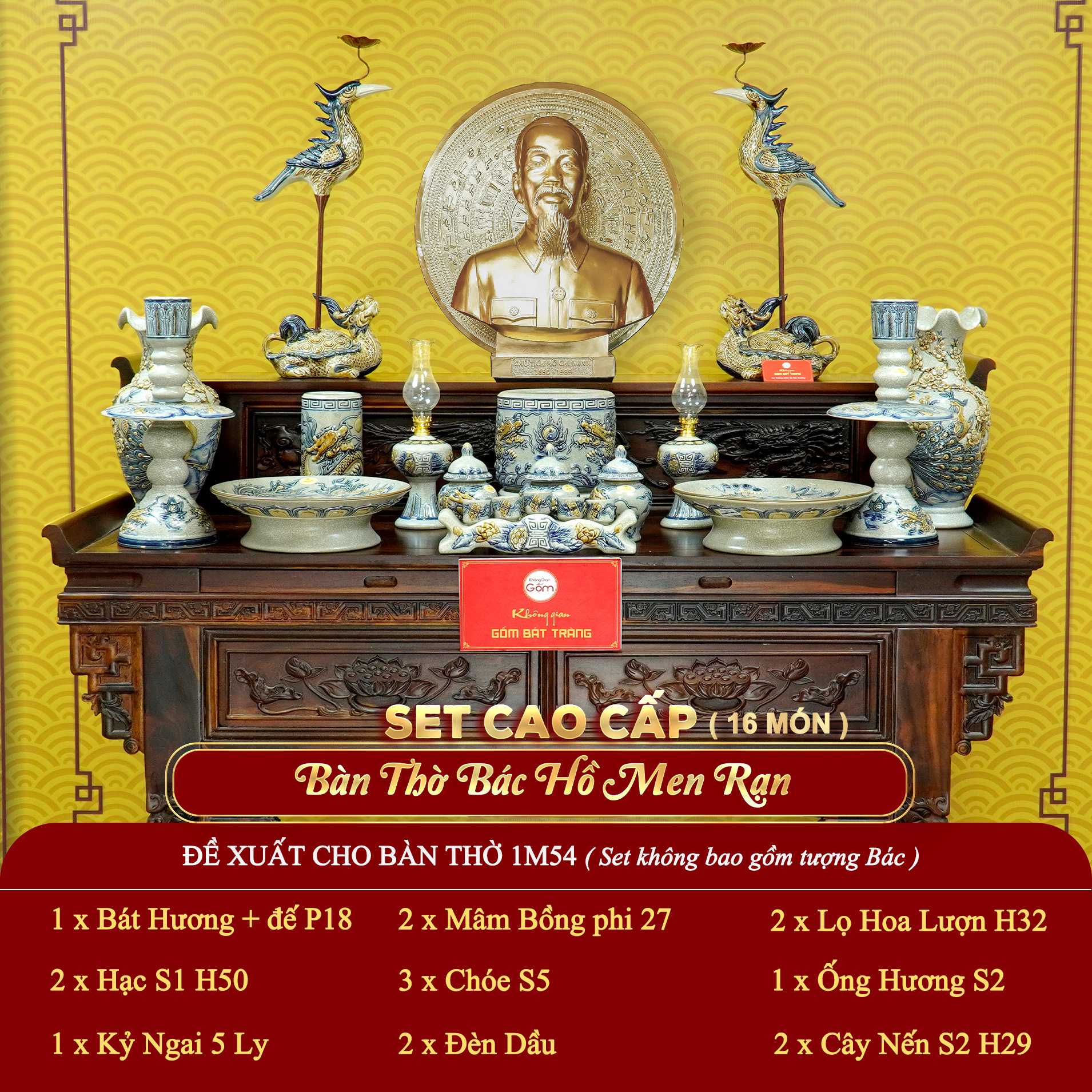 - Tên sản phẩm: [Set Cao Cấp] Bộ Đồ Thờ Bác Hồ Men Rạn (16 món)