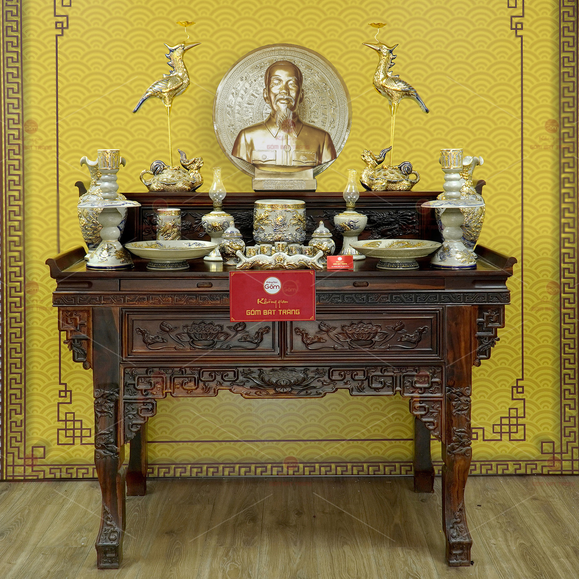 Địa chỉ mua Bộ Đồ Thờ Bác Hồ Men Rạn Vẽ Vàng uy tín
