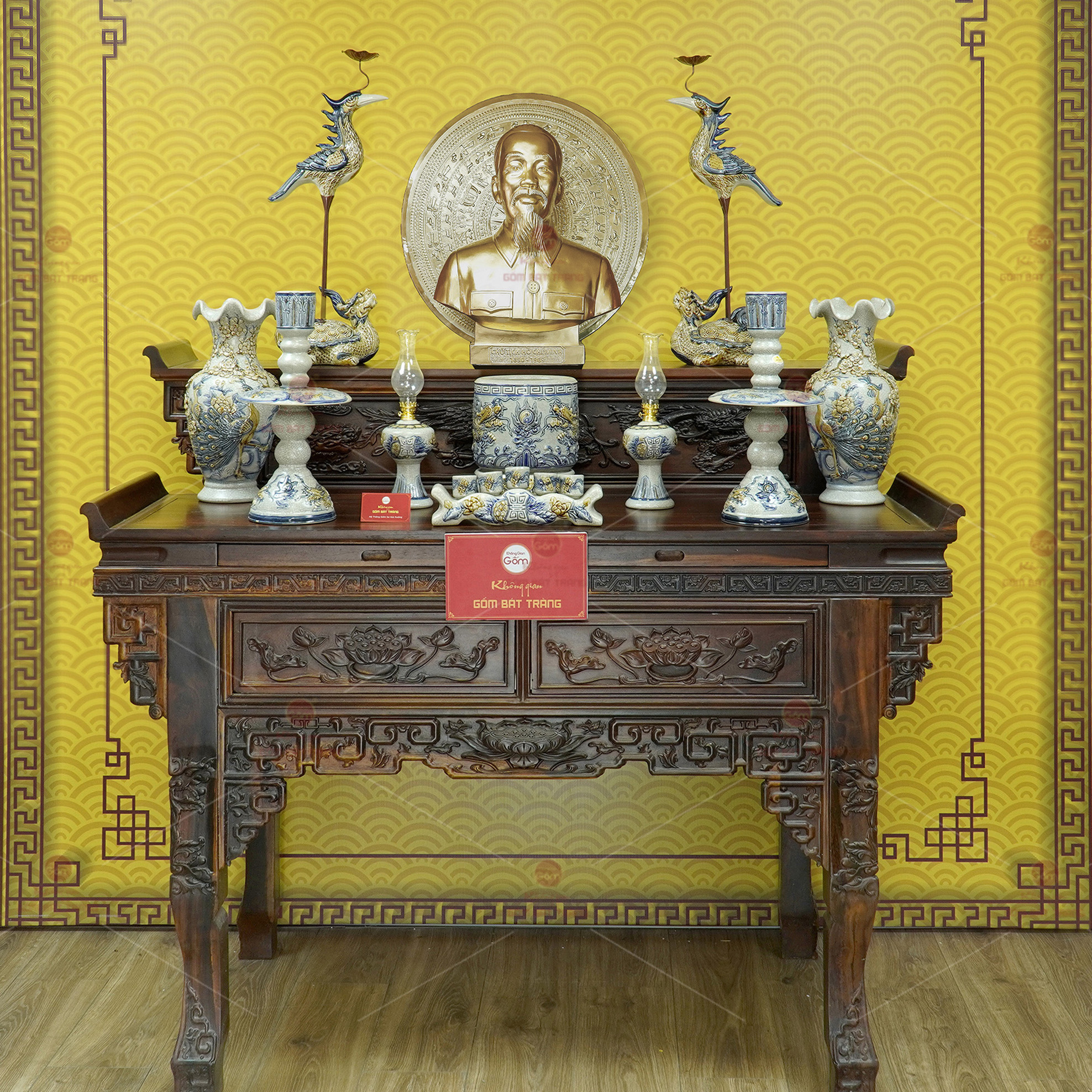 [Set Cơ Bản] Bộ Đồ Thờ Bác Hồ Men Rạn (10 món)