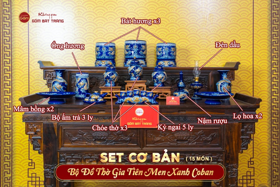 - Tên sản phẩm: [Set Cơ Bản] Bộ Đồ Thờ Gia Tiên Men Xanh Coban (15 món)