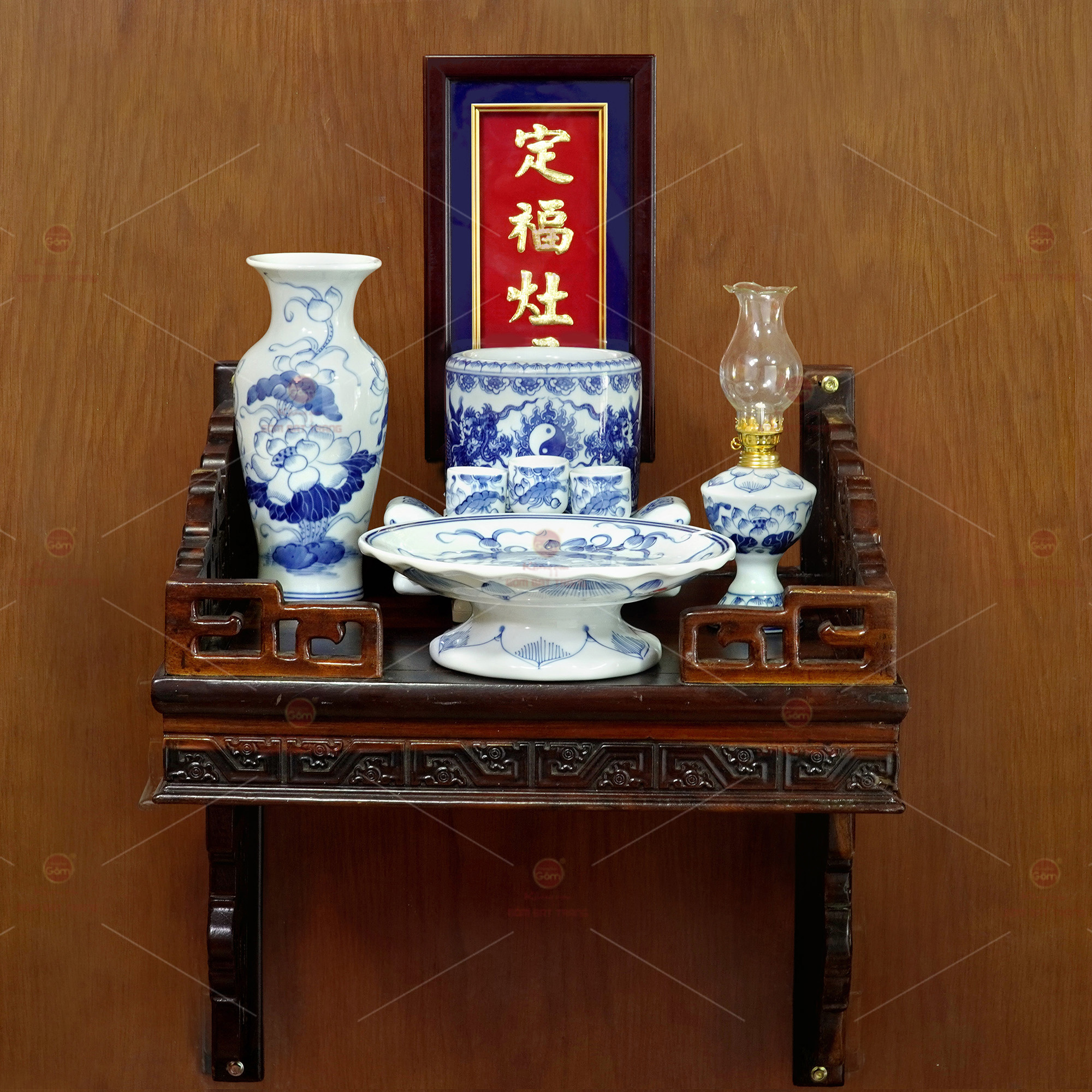 [Set Cơ Bản] Bộ Đồ Thờ Ông Táo Men Lam (6 món)