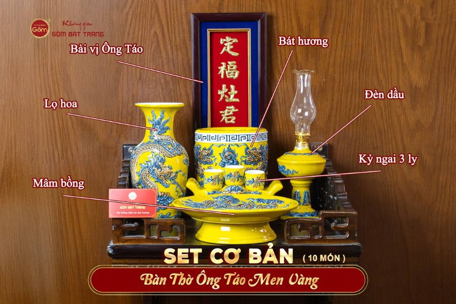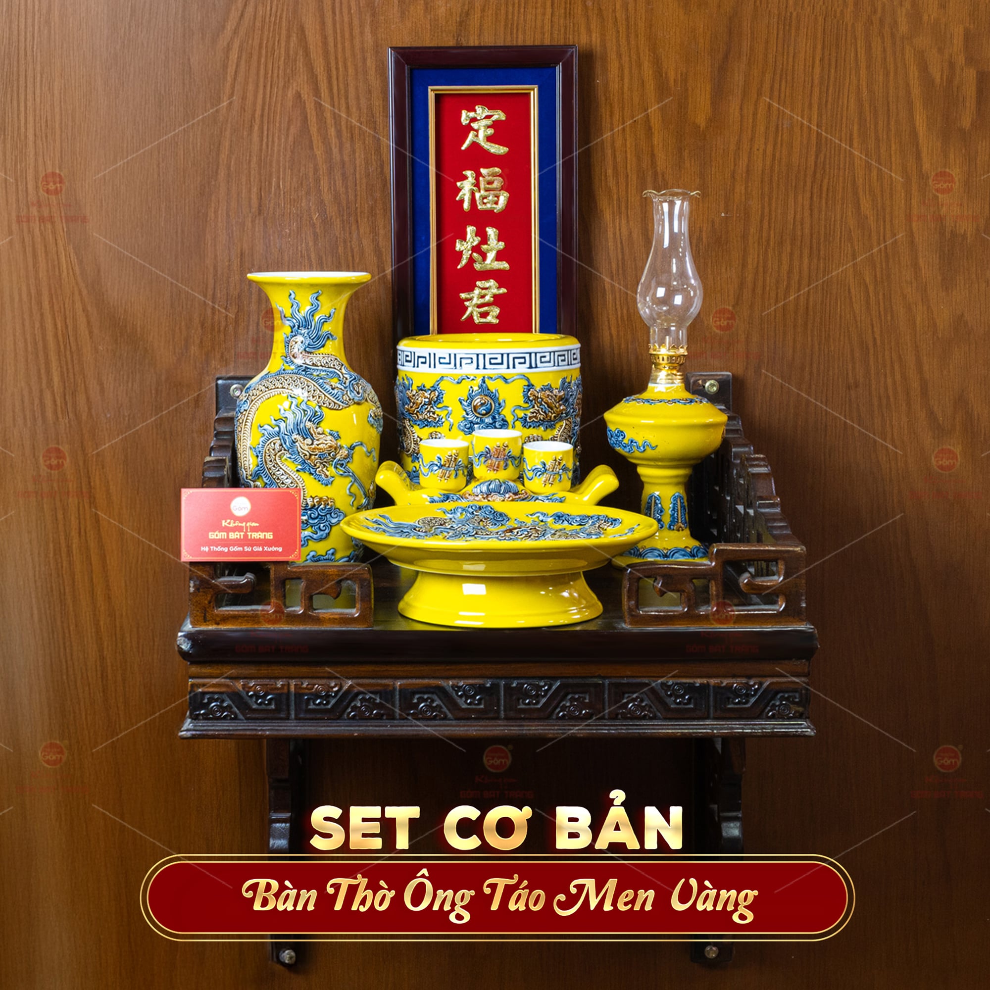 [Set Cơ Bản] Bộ Đồ Thờ Ông Táo Men Vàng (6 món)