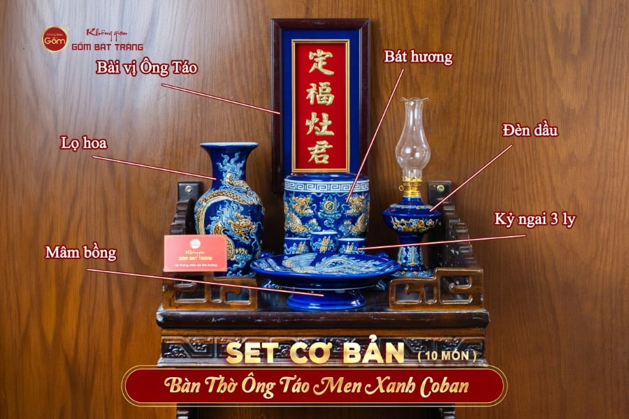 - Tên sản phẩm: [Set Cơ Bản] Bộ Đồ Thờ Ông Táo Men Xanh Coban (6 món)