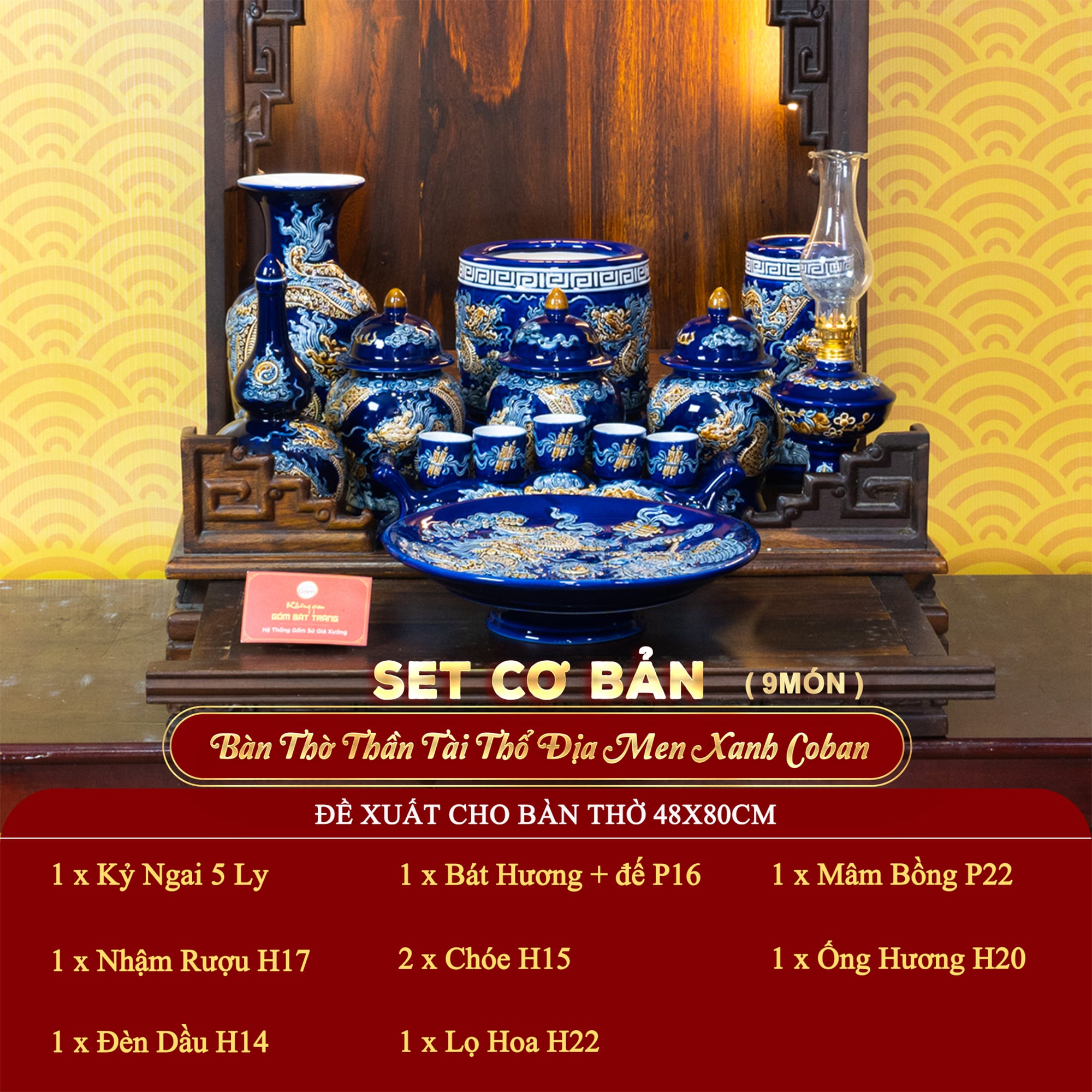 - Tên sản phẩm: [Set Cơ Bản] Bộ Đồ Thờ Thần Tài Thổ Địa Men Xanh Coban (9 món)
