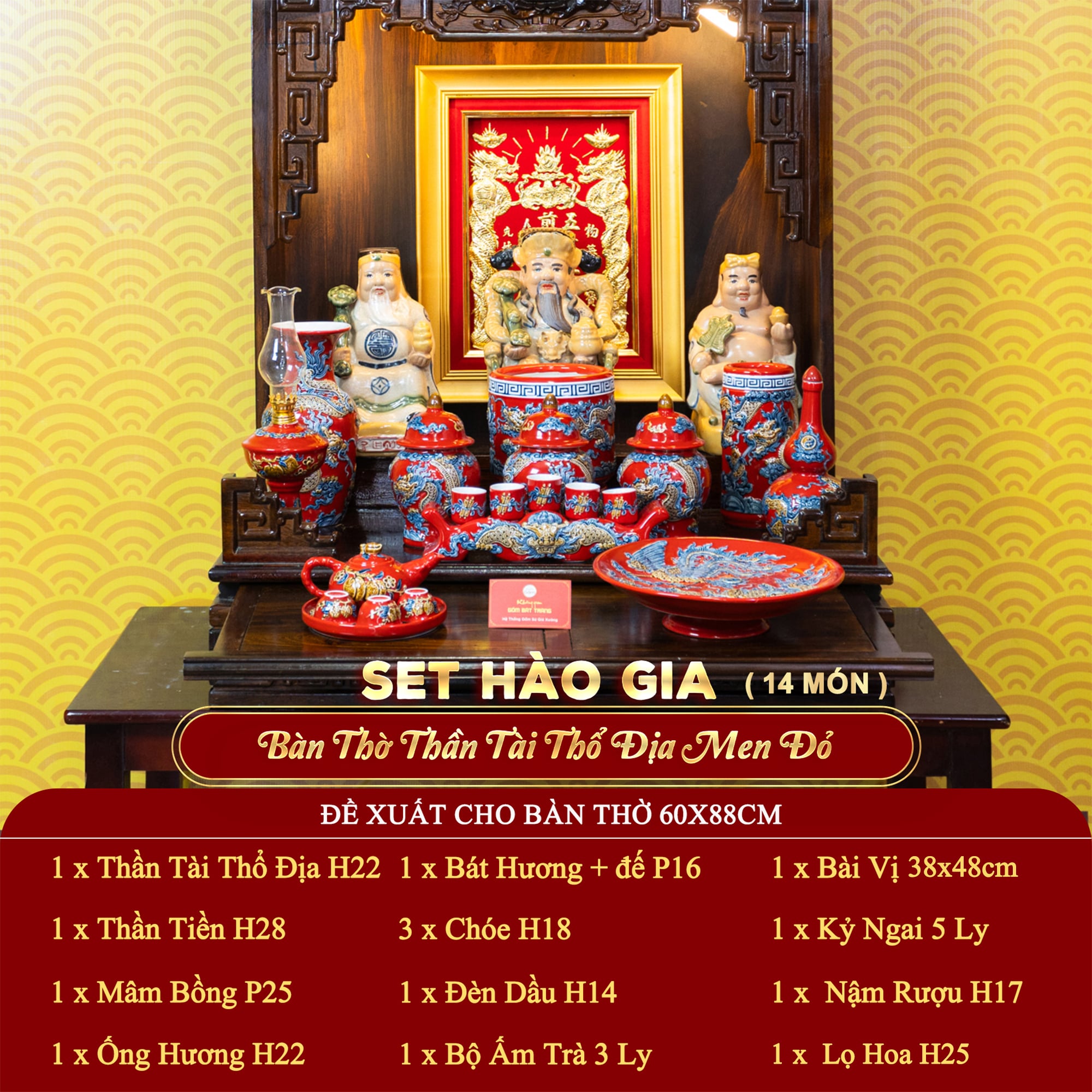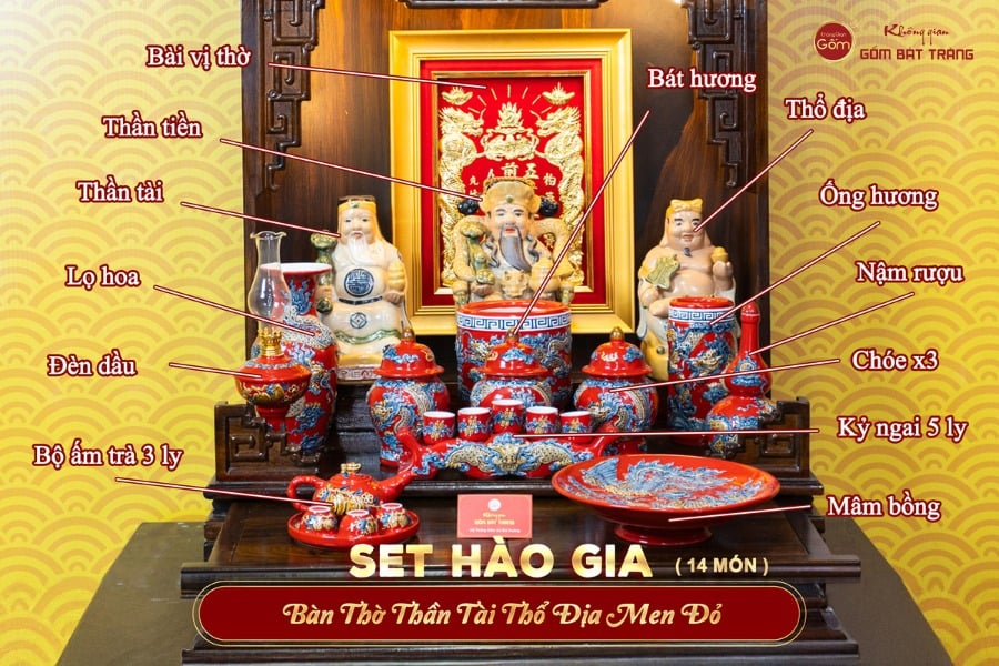 - Tên sản phẩm: [Set Hào Gia] Bộ Đồ Thờ Thần Tài Thổ Địa Men Đỏ (14 món)