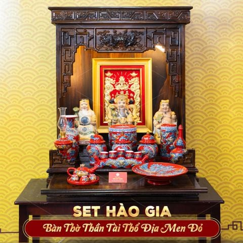 [Set Hào Gia] Bộ Đồ Thờ Thần Tài Thổ Địa Men Đỏ (14 món)