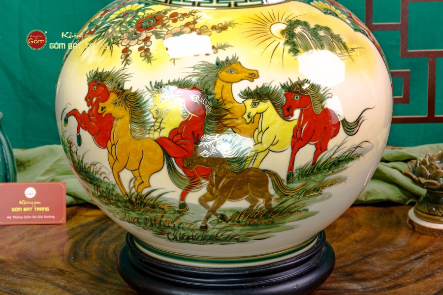 Không chỉ là vật phẩm phong thủy, tỏi bình còn là một tác phẩm nghệ thuật trang trí cao cấp. Với độ hoàn thiện tinh tế, màu sắc bền đẹp theo thời gian, sản phẩm phù hợp với nhiều phong cách nội thất: từ cổ điển đến hiện đại. Đặc biệt, các chi tiết hoa văn, mây trời, cánh buồm và đàn ngựa đều được thể hiện uyển chuyển, tạo cảm giác sinh động, tràn đầy sinh khí cho không gian sống.
