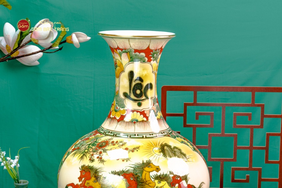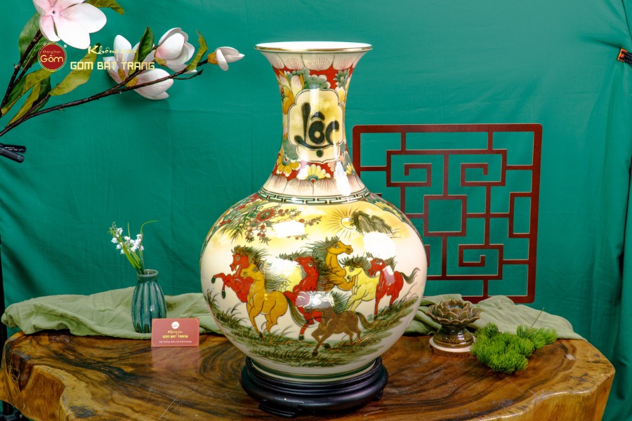 Mỗi chiếc bình mang dòng chữ thư pháp “Tài”, “Lộc” – như lời chúc phúc, mang năng lượng tích cực và vượng khí đến cho gia chủ.