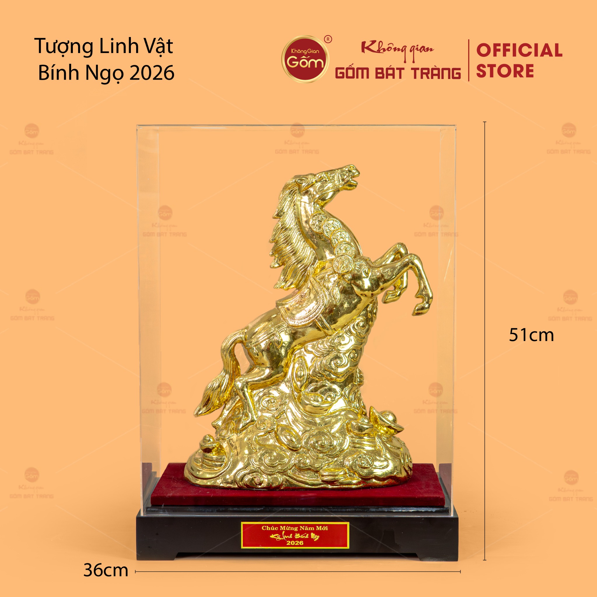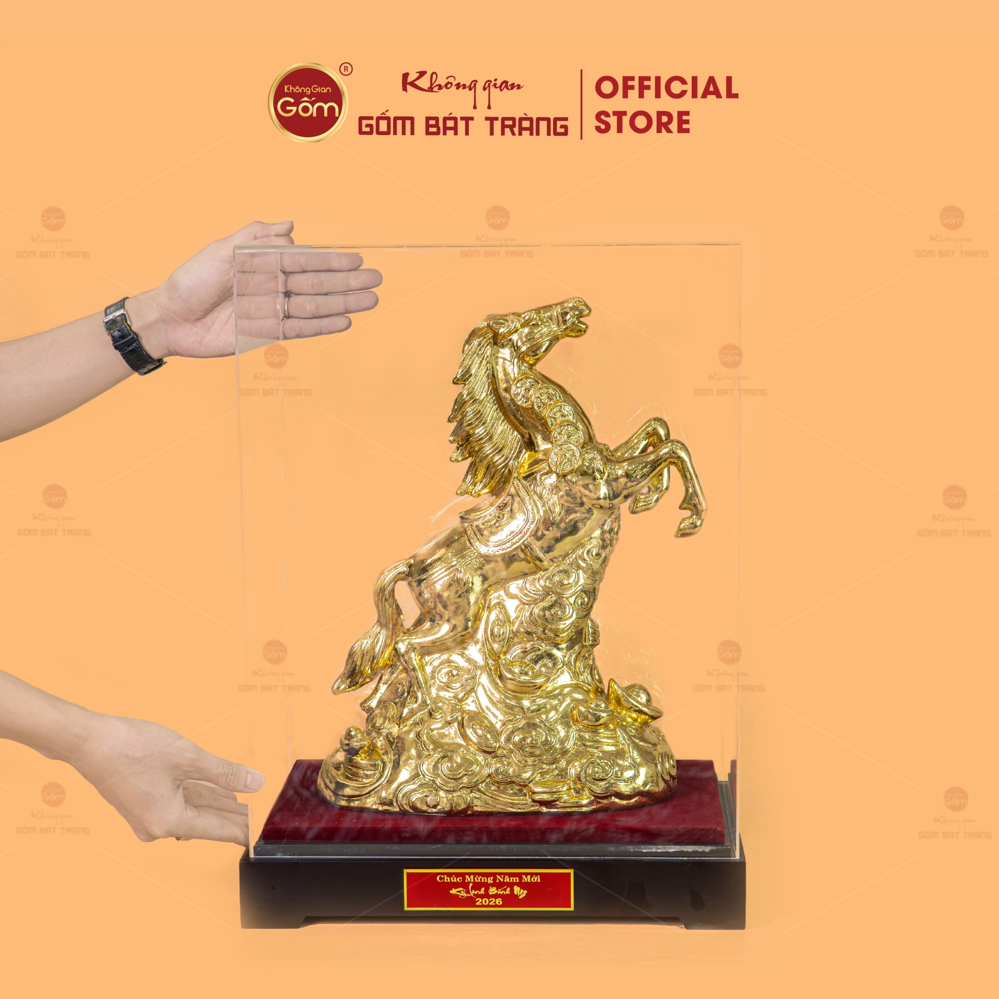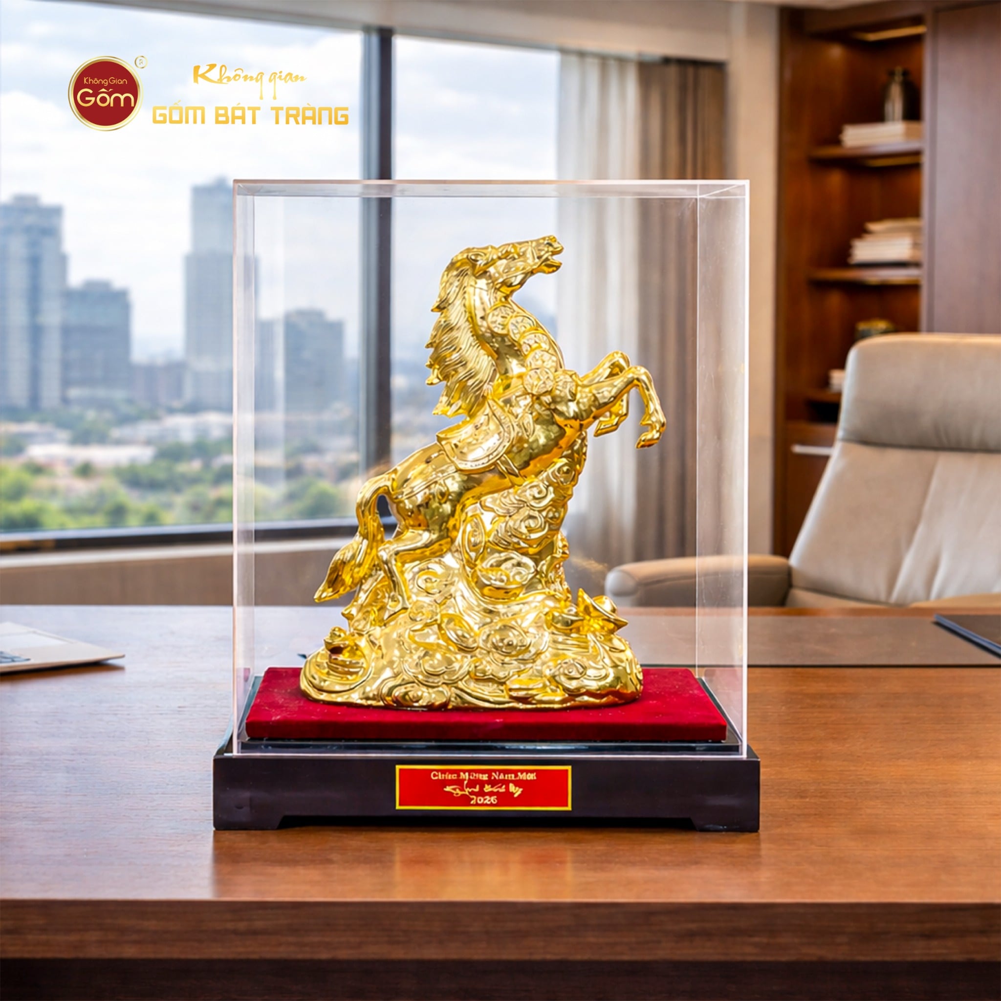 Tượng Linh Vật Ngựa Mạ Vàng được phân phối tại Không Gian Gốm Bát Tràng – đơn vị chuyên cung cấp gốm sứ nghệ thuật, linh vật phong thủy và quà tặng cao cấp mang giá trị thẩm mỹ và văn hóa.