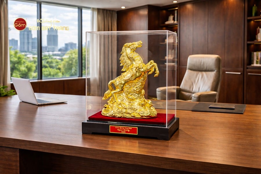 Tượng Linh Vật Ngựa Mạ Vàng không chỉ là vật phẩm trang trí mà còn là biểu tượng của thành công và thịnh vượng, góp phần tạo dấu ấn đẳng cấp cho không gian và người sở hữu.
