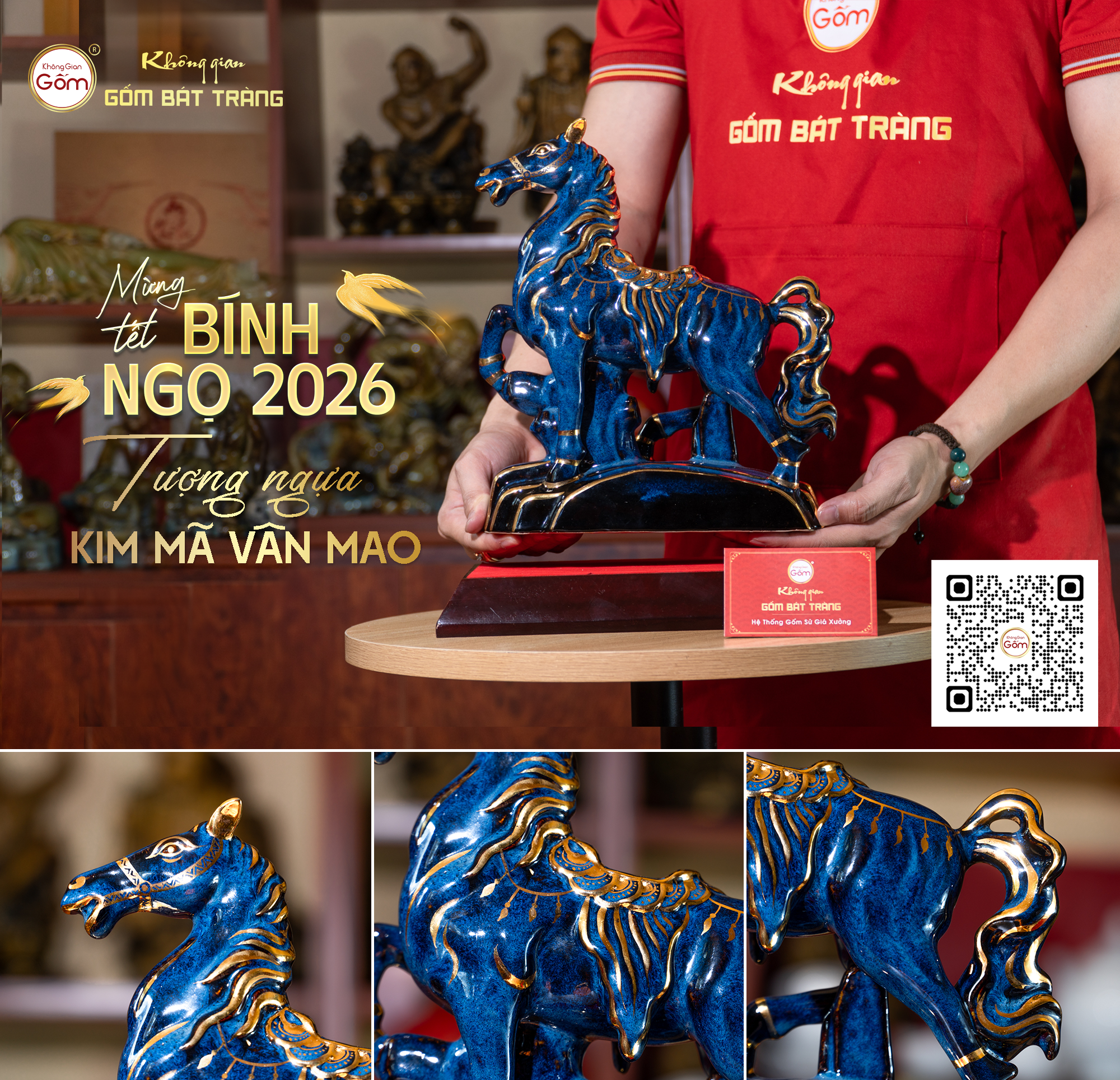 Tượng Ngựa Kim Mã Vân Mao hiện được giới thiệu và trưng bày tại Không Gian Gốm Bát Tràng – nơi quy tụ các dòng sản phẩm gốm sứ phong thủy và trang trí được tuyển chọn kỹ lưỡng. Tại đây, mỗi tác phẩm đều chú trọng đến chất liệu, tạo hình và giá trị sử dụng trong không gian sống. Không Gian Gốm Bát Tràng hướng đến việc mang lại những sản phẩm hài hòa về thẩm mỹ, rõ ràng về ý nghĩa và phù hợp với nhiều nhu cầu trưng bày, quà tặng khác nhau.