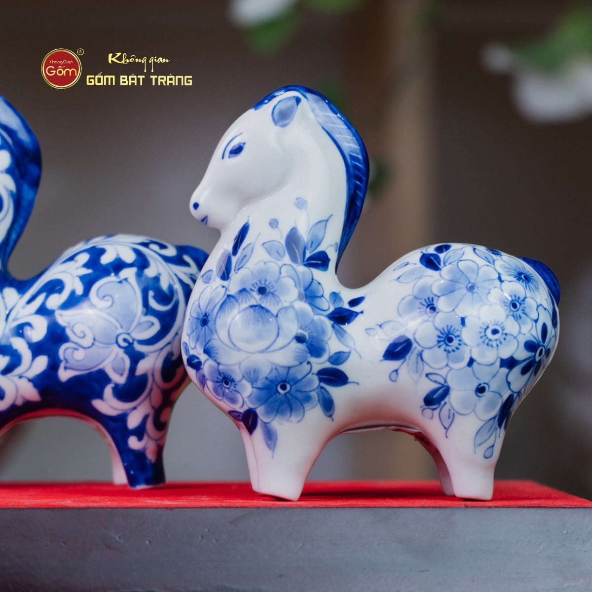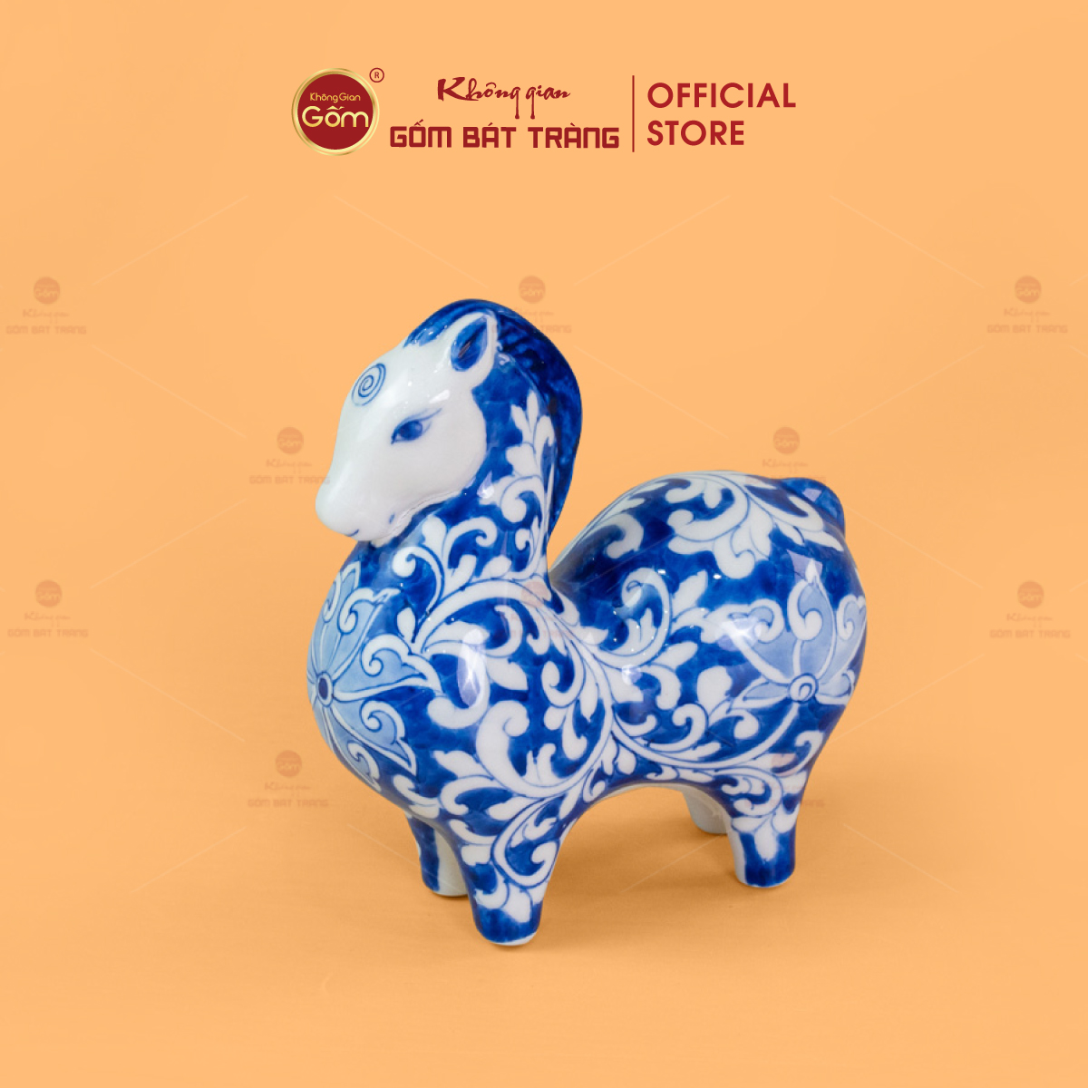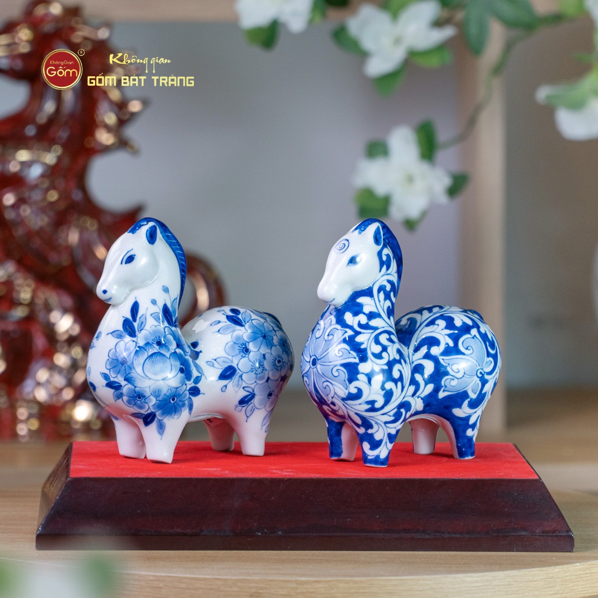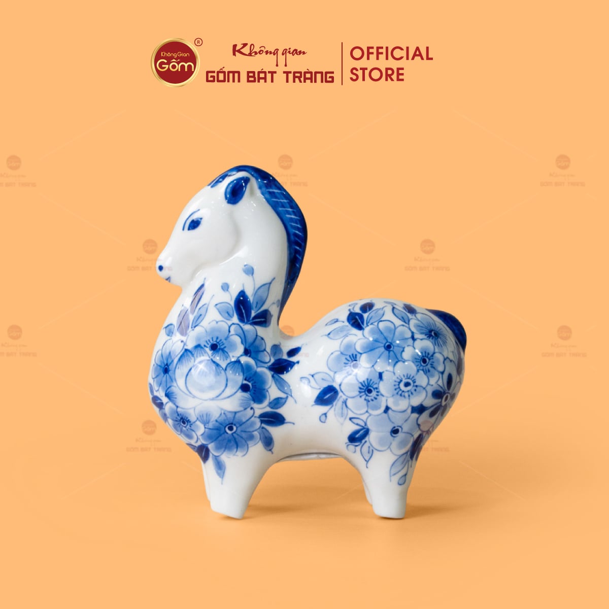 Lớp men lam xanh cobalt đặc trưng được nung ở nhiệt độ cao, tạo chiều sâu màu sắc, vừa cổ điển vừa sang trọng. Trên nền men trắng ngà, các họa tiết hoa văn được vẽ tay tỉ mỉ, sắc nét, mang phong cách truyền thống nhưng vẫn phù hợp với không gian sống hiện đại. Mỗi tượng ngựa là một tác phẩm độc bản, không trùng lặp hoàn toàn, thể hiện rõ dấu ấn cá nhân của người nghệ nhân.