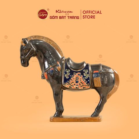 Tượng Ngựa Ô Phương Nam là một trong những mẫu tượng phong thủy mang thần thái mạnh mẽ và sang trọng bậc nhất của dòng gốm nghệ thuật Bát Tràng. Sản phẩm có kích thước 23cm cao – 25cm dài, hình khối cân đối, đứng trên đế vững chãi, phù hợp trưng bày ở nhiều không gian như phòng khách, phòng làm việc, quầy lễ tân, tủ phong thủy hoặc văn phòng doanh nghiệp.
