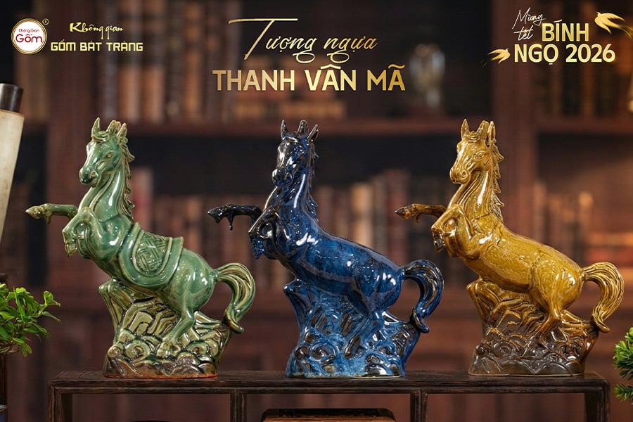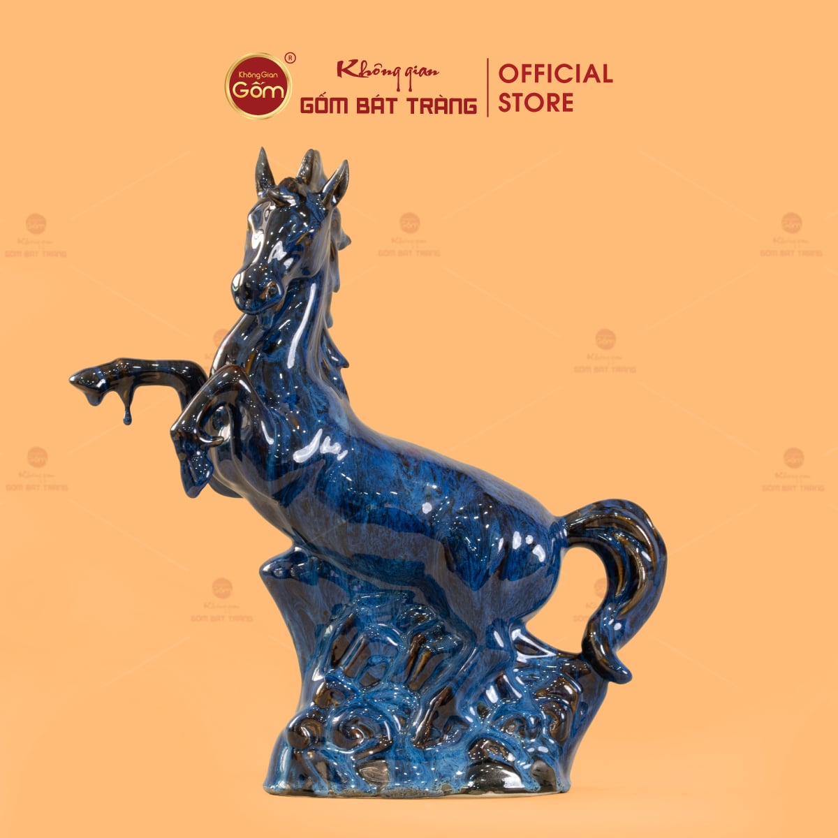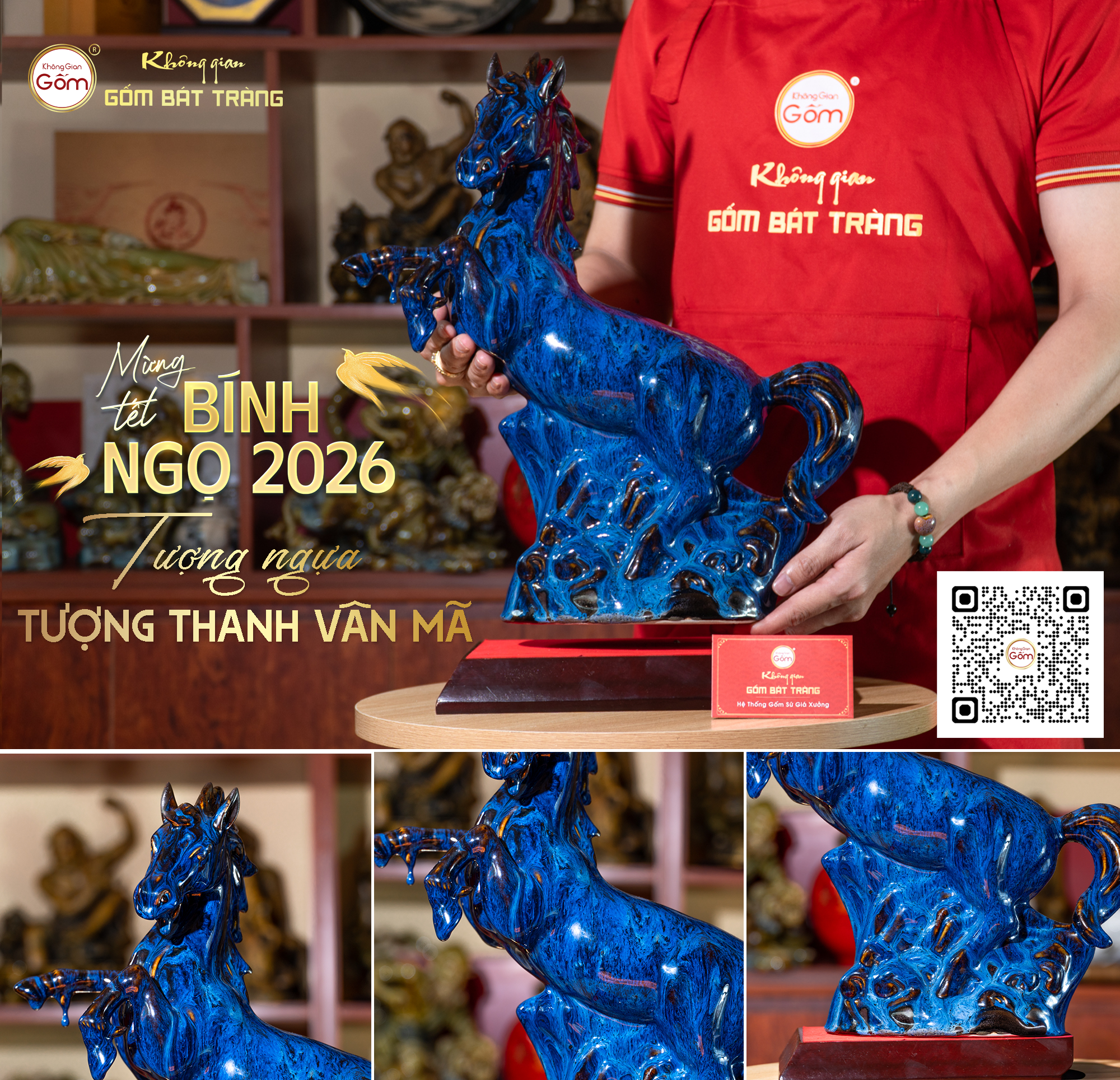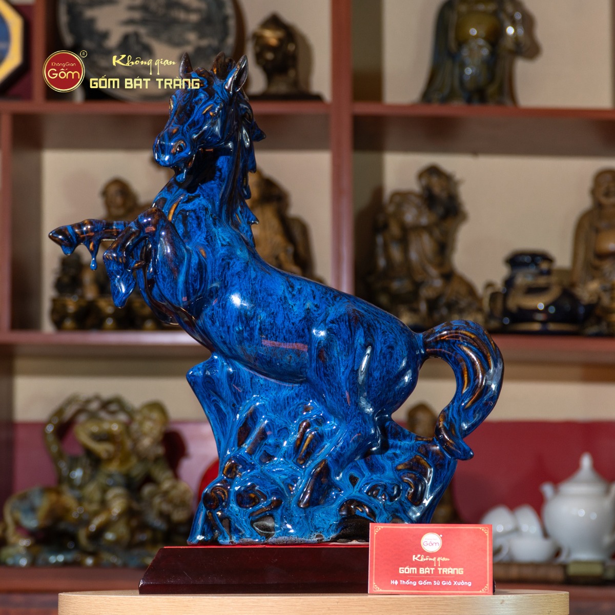 Tượng Ngựa Thanh Vân Mã là dòng sản phẩm phong thủy cao cấp thuộc bộ tượng mã nghệ thuật Bát Tràng. So với các mẫu ngựa thông thường, phiên bản Thanh Vân Mã mang vẻ đẹp mạnh mẽ, trầm ổn và sâu sắc hơn, đặc biệt nhờ lớp men sậm màu được xử lý tinh xảo qua nhiều công đoạn nung thủ công.