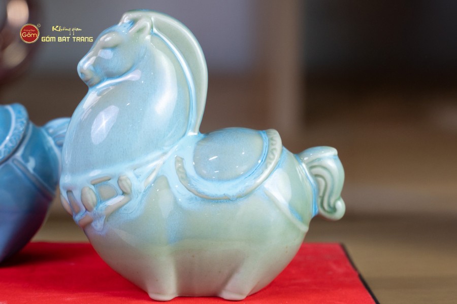 Điểm đặc biệt của dòng tượng này nằm ở thiết kế nhỏ gọn, thân hình tròn đầy, các chi tiết được cách điệu mềm mại nhưng vẫn giữ được thần thái linh vật ngựa. Lớp men phủ đều, màu sắc rõ nét, mỗi màu tượng trưng cho một nguồn năng lượng phong thủy riêng. Bộ tượng gồm 6 màu khác nhau, mang đến nhiều lựa chọn cho khách hàng tùy theo mệnh, sở thích hoặc mục đích trưng bày.